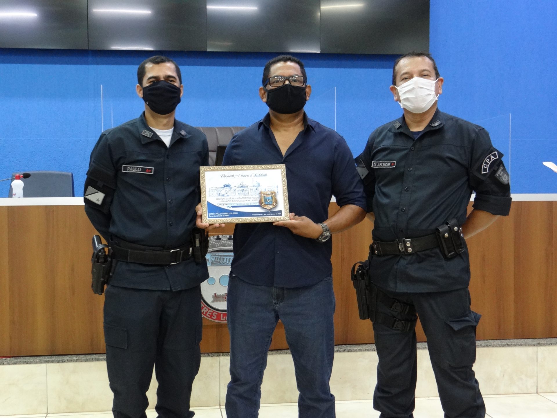 Durante formatura geral com parte do efetivo do 2º Batalhão, atendendo os protocolos de biossegurança, foi prestado homenagens ao Subtenente PM Jefferson Barbosa de Paula e ao 1º Sargento PM Sérgio Barbosa dos Santos, os quais dedicaram mais de 30 anos de suas vidas a Polícia Militar desempenhando com afinco a nobre missão de bem servir e proteger a sociedade sulmatogrossense em especial a população três-lagoense.