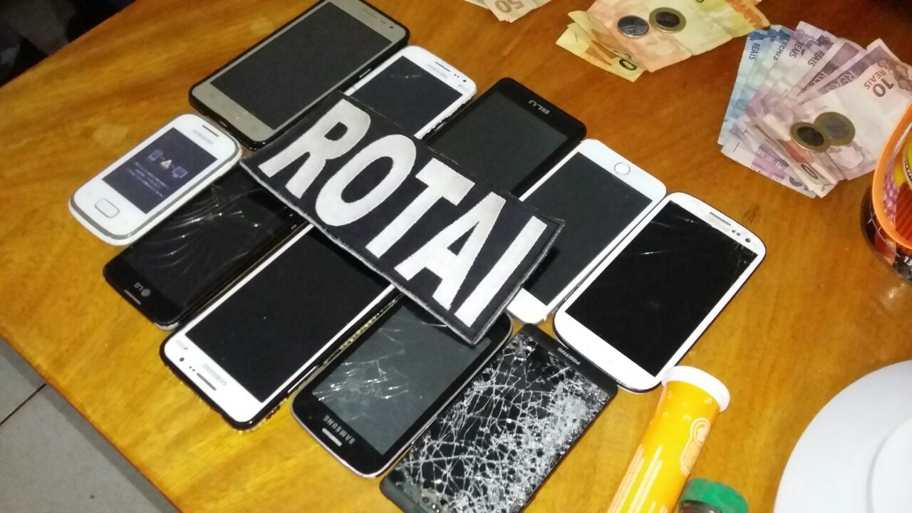 Foram localizados vários celulares sem origem, dentre eles um Iphone avaliado em mais de R$2.000,00, dois notebooks e uma Tv de LED marca STI de 39’, que também não souberam informar a origem. Que ainda foi localizado 05 frascos de enxaguante bucal.
