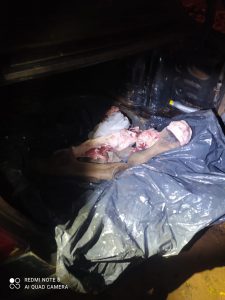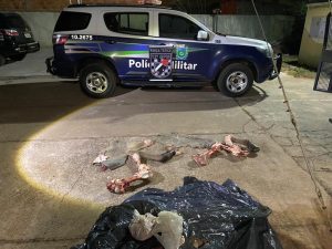 Uma abordagem foi iniciada e os policiais encontraram no carro algumas partes escarniadas de um bovino. Os homens disseram que estavam pescando e tiraram partes de um boi que estava ainda vivo e atolado no brejo, confessando assim o abigeato. Mas os policiais não se convenceram que esta seria toda versão e acabaram, durante um busca domiciliar, encontrando quatro armas de fogo tipo espingarda (02 calibre 22, 01 calibre 16 e 01 calibre 36), muitas munições de diversos calibre (inclusive de fuzil 762) e um motor de barco sem comprovação de procedência lícita.