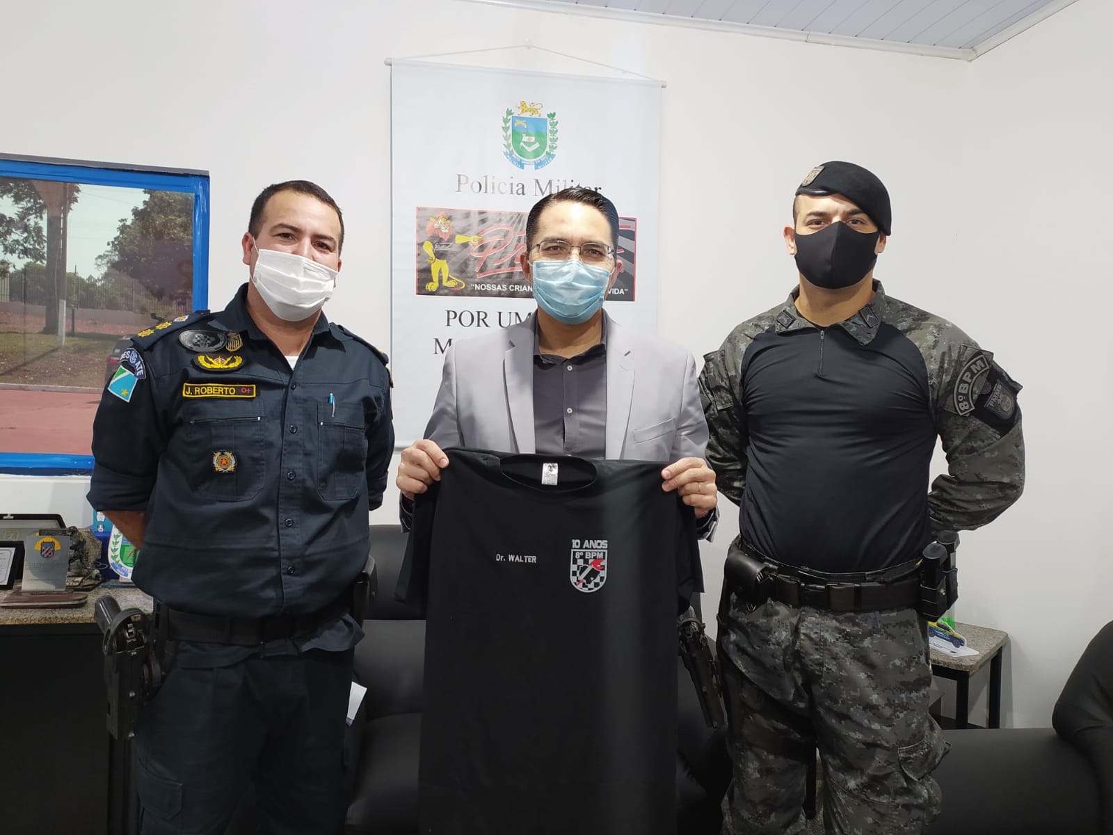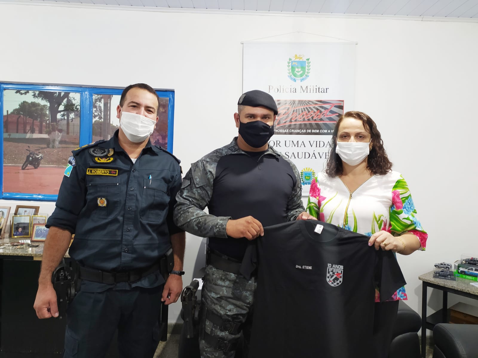 Na oportunidade o Comandante do Grupamento de Força Tática 3° Sargento Amorim acompanhado pelo Comandante da unidade Tenente Coronel J. Roberto entregaram para os membros do Conselho uma camiseta personalizada comemorativa relativa aos 10 anos da criação da Força Tática no Batalhão, comemorado no mês de setembro. Ainda durante a visita o Comandante aproveitou para mostrar as obras que continuam sendo realizadas na unidade, sendo as mais recentes, uma parceria com a Cooperativa Sicredi que visa melhorar as instalações e os espaços que são utilizados pela Equoterapia.