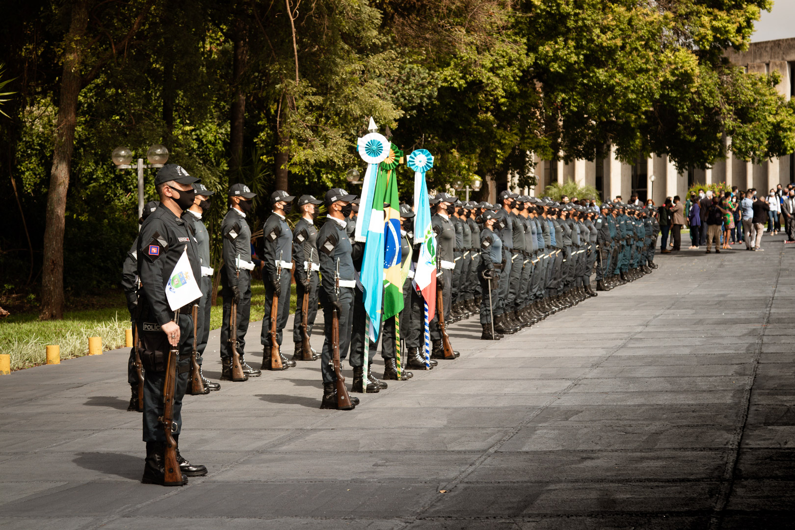 Tradicionalmente a Polícia Militar participa deste evento solene com tropa formada e desta vez não foi diferente. Composta por dois pelotões, um de alunos-oficiais e outro de alunos-sargentos e alunos-cabos, Guarda-Bandeira e Banda Musical.