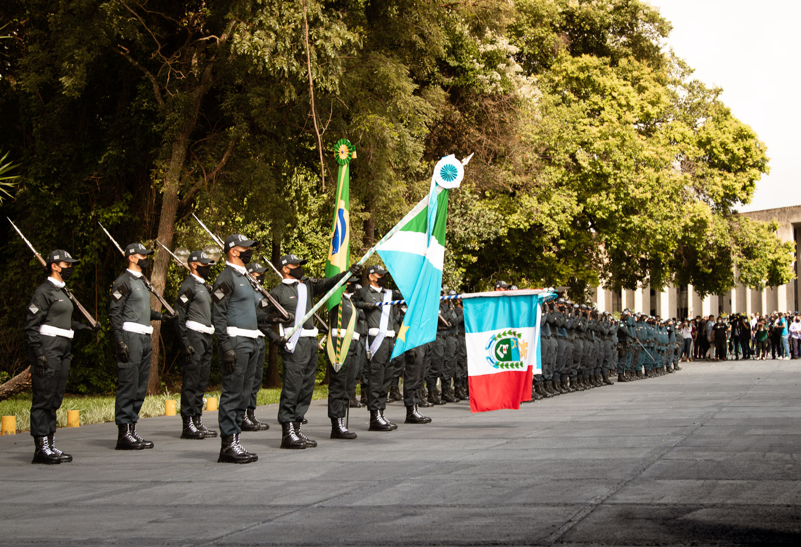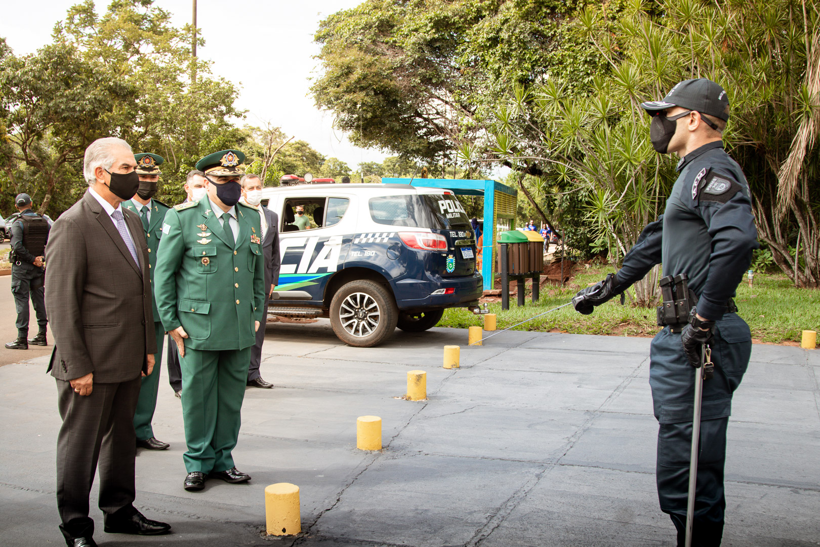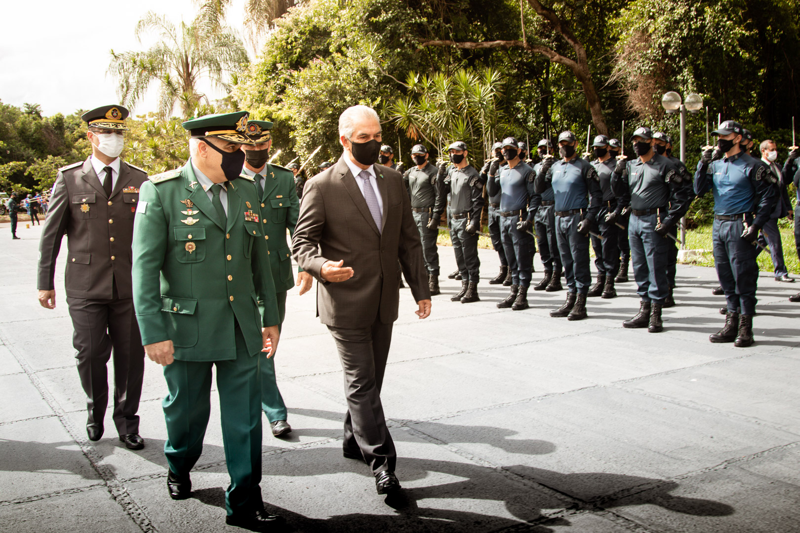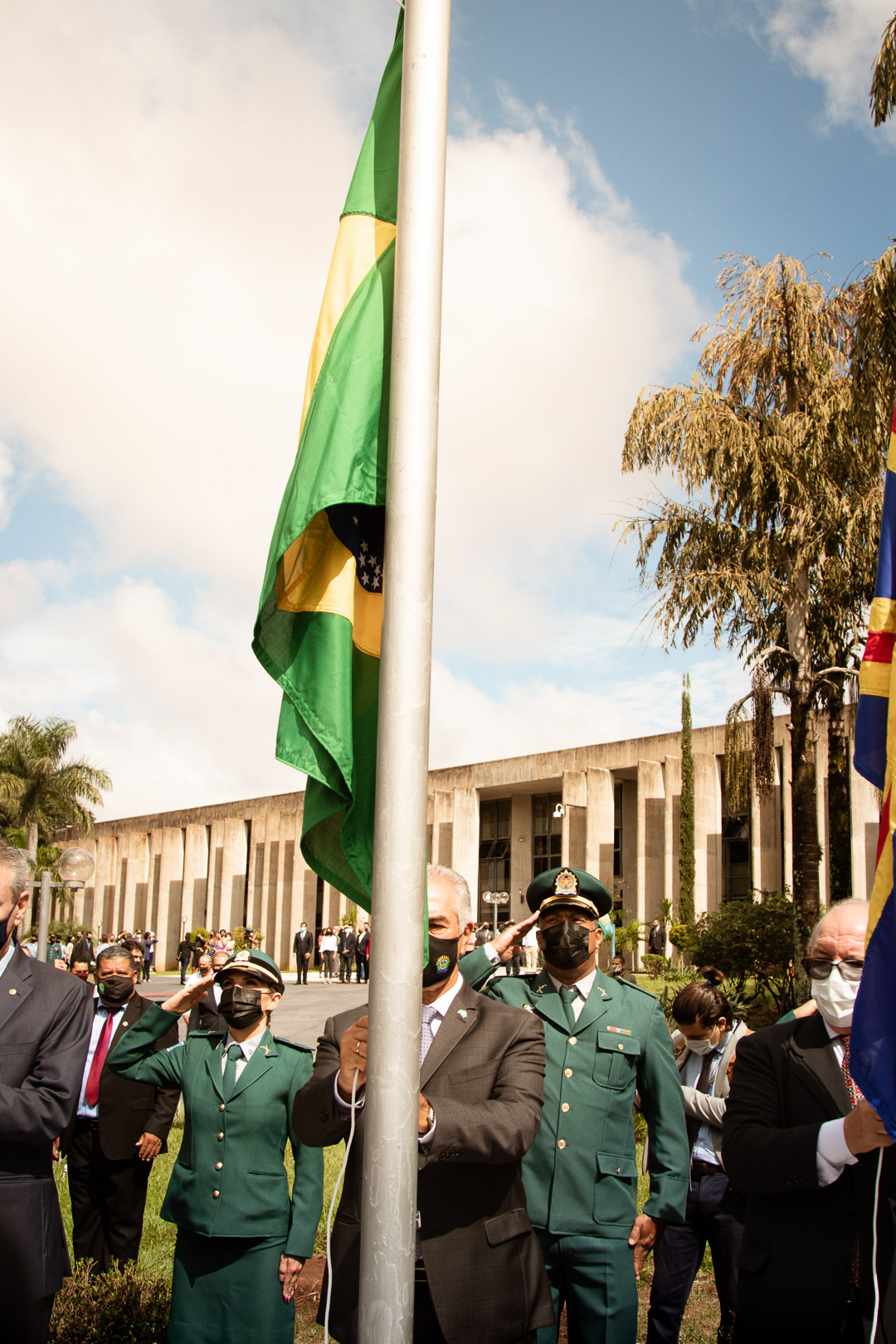 O governador do Estado de Mato Grosso do Sul, Reinaldo Azambuja, juntamente com o Comandante-Geral da Polícia Militar, Coronel QOPM Marcos Paulo Gimenez, iniciaram a solenidade às 9h da manhã, com revista à tropa composta por integrantes da PMMS e posterior hasteamento da Bandeira.