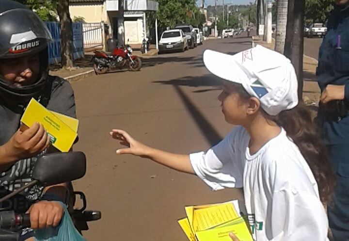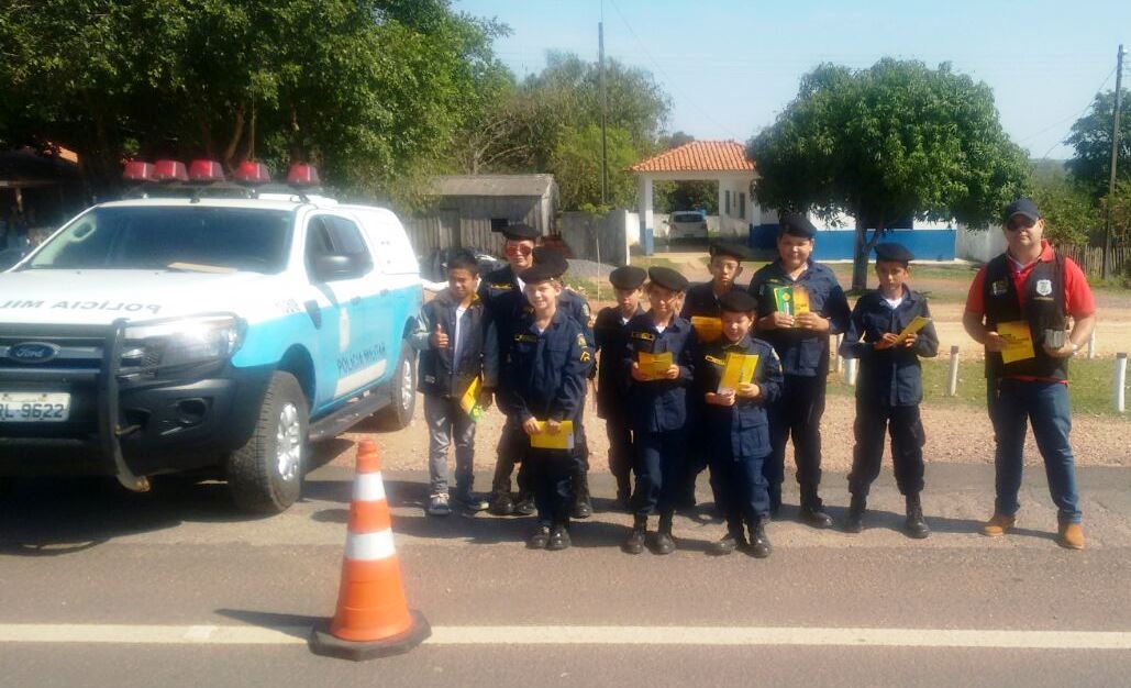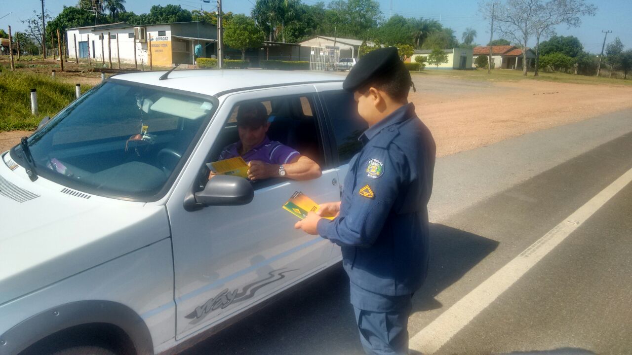 Em Jardim, na manhã de ontem (22), a Polícia Militar e o Núcleo de Trânsito, juntamente com os Projetos Patrulha Mirim e Bombeirinhos do Amanhã realizaram uma Blitz Educativa com a distribuição de panfletos da Campanha aos condutores de veículos automotores.