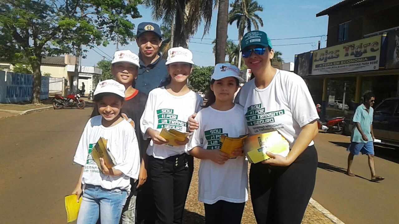 Houve, ainda, a participação dos alunos dos Projetos Bom de Bola, Bom na Escola e Patrulha Mirim, que realizaram a distribuição de materiais informativos para orientar a população sobre os perigos de dirigir sobre o efeito do álcool, o uso do telefone celular no trânsito, o uso do cinto de segurança, o respeito ao pedestre, a conduta do ciclista durante a utilização das vias, o respeito aos limites de velocidade e sobre as consequências da direção perigosa.