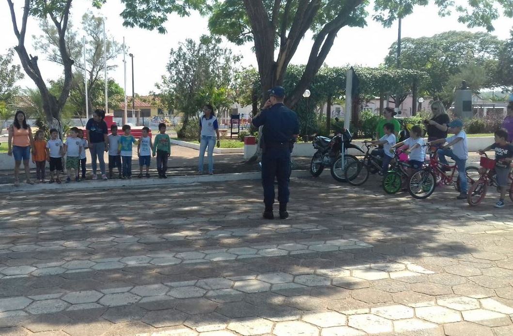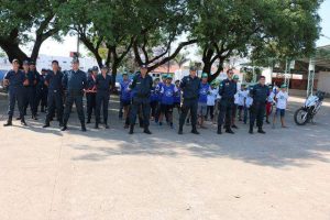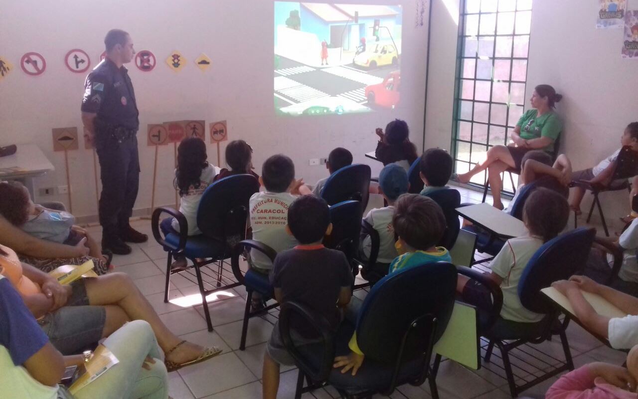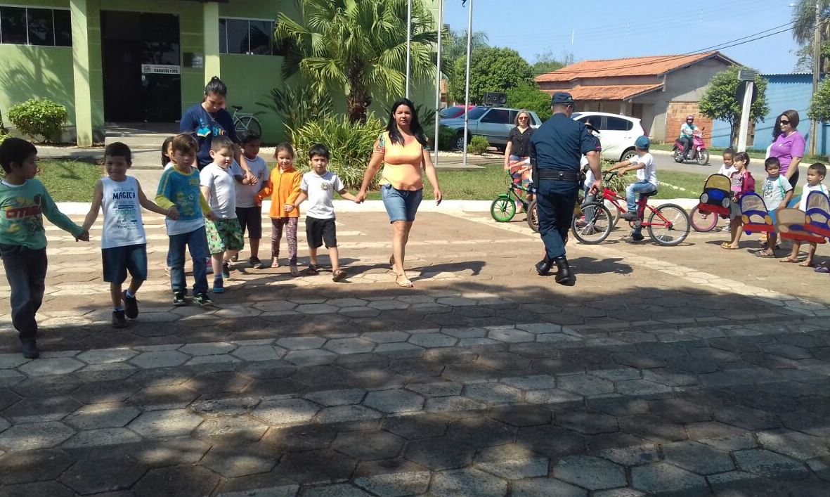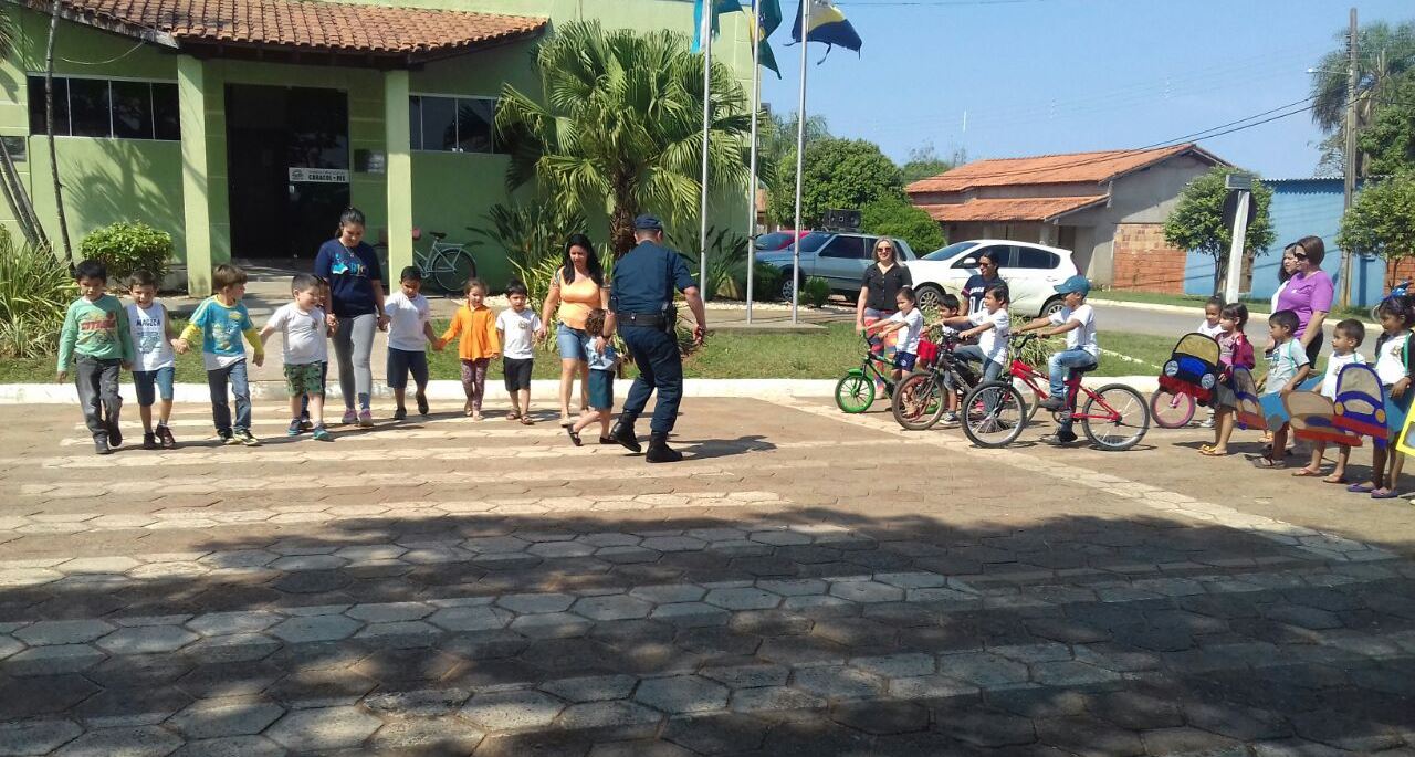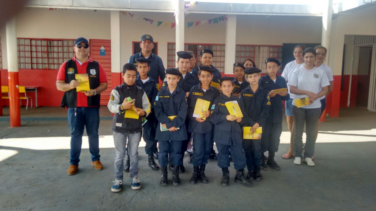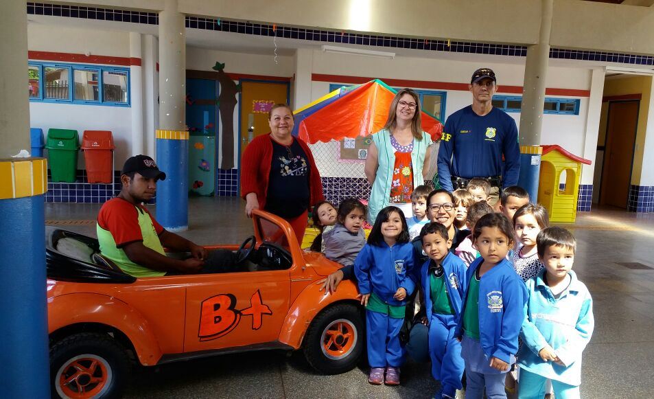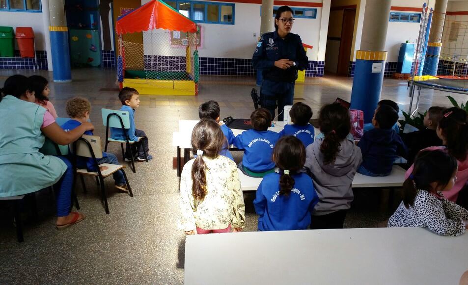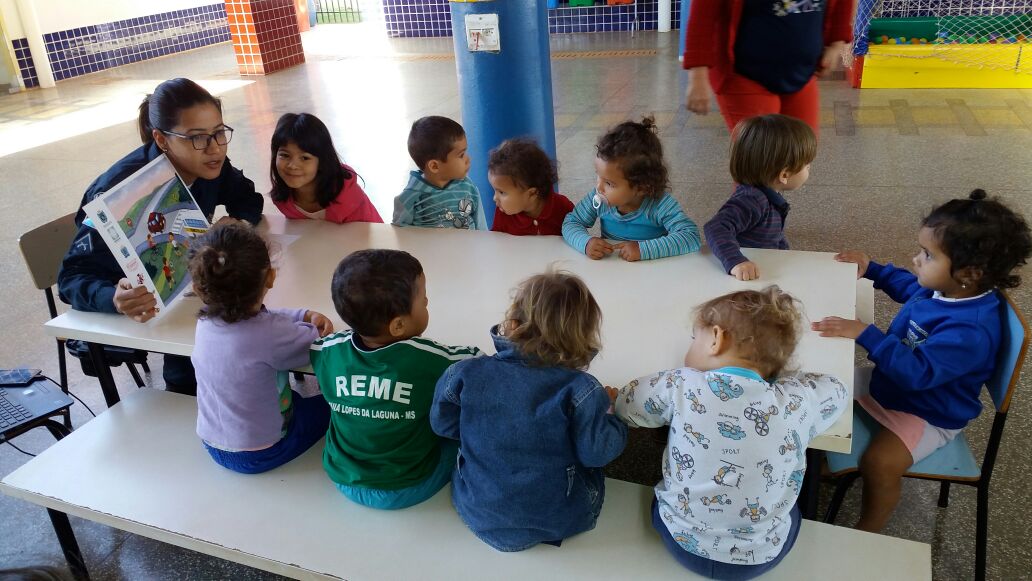 Na cidade de Guia Lopes da Laguna, a Soldado PM Cristina realizou palestra para 150 alunos da Educação Infantil no CIEI Vitalina Martinês Silva, em parceria com o Agente Quinzani, da Polícia Rodoviária Federal.