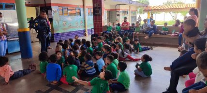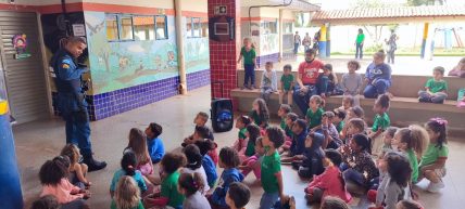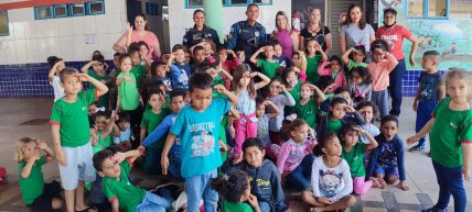 O evento se deu a convite da diretora Patrícia Silva, onde compareceram o 2º Sargento Nilson e a Cabo Simone e durante a proveitosa conversa com os alunos, os policiais falaram sobre o que é ser policial militar, como atuam e enfatizaram que o policial militar é um servidor da sociedade, defensor dos direitos e fiscalizador das leis. E que as crianças devem ver os policiais militares como amigos e guardiões! Foi enfatizado para os alunos que para ser um policial militar se deve estudar muito, não mecher com drogas, respeitar os pais e professores e não cometar atos ilícitos.