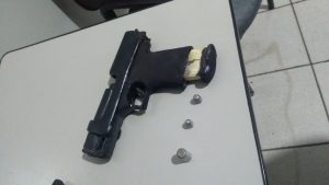 Durante sua fuga a pé, o assaltante sacou sua arma de fogo contra os policiais militares, sendo necessário que eles realizassem o uso proporcional da força para impedir a iminente e injusta agressão, de modo que alvejaram o assaltante na região de suas pernas. O homem foi contido e imobilizado pelos policiais, que constataram que a arma de fogo que ele portava se tratava de arma produzida artesanalmente e possuía três munições.
