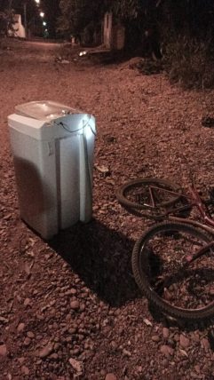 A segunda ocorrência de furto ocorreu nesta quarta (29), por volta das 00h, no bairro Centro, em que a Polícia Militar foi acionada pois testemunhas viram um homem, indivíduo de 35 anos, carregando uma máquina de lavar roupas em atitude suspeita e que quando foi perguntado sobre o tal carregamento ele saiu em disparada tomando rumo ignorado. Com isso, os policiais realizaram diligências na região e encontrou o autor escondido em um terreno baldio junto com a referida máquina o qual disse ter encontrado em uma caçamba de lixo. Por se tratar de uma máquina em bom estado de conservação os policiais levaram o autor e o aparelho de lavar roupas para a Delegacia de Polícia Civil padra a tomada das medidas necessárias.