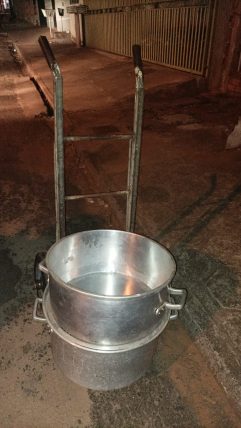 A terceira ocorrência ocorreu, também nesta quarta (29), por volta das 01h, no bairro Centro, em que a Guarnição da Polícia Militar estava realizando o patrulhamento ostensivo pela região e visualizaram um indivíduo, homem de 34 anos, em atitude suspeita, o qual conduzia uma bicicleta na cor vermelha modelo feminino sem freios e arrastava um carrinho de mão com duas panelas grande de alumínio dentro. Ao perceber que seria abordado o autor tentou fugir, mas perdeu o controle e acabou caindo junto as panelas e o carrinho de mão, assim foi feita a busca pessoal no mesmo da qual foi encontrada uma faca de cabo de madeira de aproximadamente 20cm de lâmina que disse ter ganhado da vítima do furto, homem de 47 anos, o autor relatou ainda que usou uma chave para adentrar na residência, mas não informou o nome de quem lhe deu a tal chave. Com isso, os policiais entraram em contato com a vítima que negou o relato sobre a faca e informou que outras panelas haviam sido furtadas de seu depósito. Diante dessa situação, o autor do furto foi preso e levado para a Delegacia de Polícia Civil para a realização das medidas cabíveis.