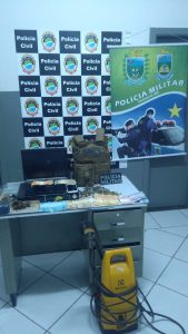 A irmã do cidadão e proprietária da casa, uma mulher de 20 anos, alegou ter adquirido a motocicleta por R$ 1.500,00 reais. Diante do flagrante delito de receptação, os policiais realizaram busca domiciliar e, além da motocicleta, localizaram 01 balança de precisão, 01 cigarro de maconha (0,8 g), 01 porção de maconha (0,94g) e 03 porções de substância análoga a pasta base de cocaína (1,4 g). Uma mulher de 23 anos alegou ser proprietária da droga. Objetos de origem duvidosa (celulares, relógios, monitores, entre outros) e cerca de R$ 2.800 reais também foram apreendidos.