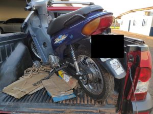 Poucos instantes após a informação acima, os policiais receberam uma denúncia informando que havia acabado de ocorrer o furto de uma motocicleta em um salão de festas localizado no Jardim Laranjeiras.