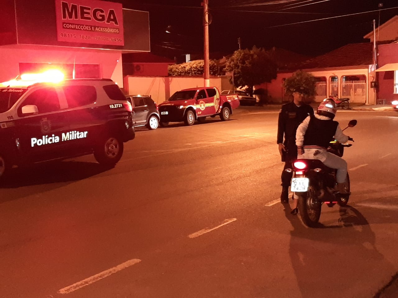 Na parte da noite, foi realizado blitz de trânsito em vários pontos da Avenida São Cristóvão/São Luiz, onde foram abordados 26 carros e 17 motos, e acompanhamento juntamente com o Corpo de Bombeiros a bares e estabelecimentos comerciais da cidade, para fiscalização de alvarás e vistoria dos locais.