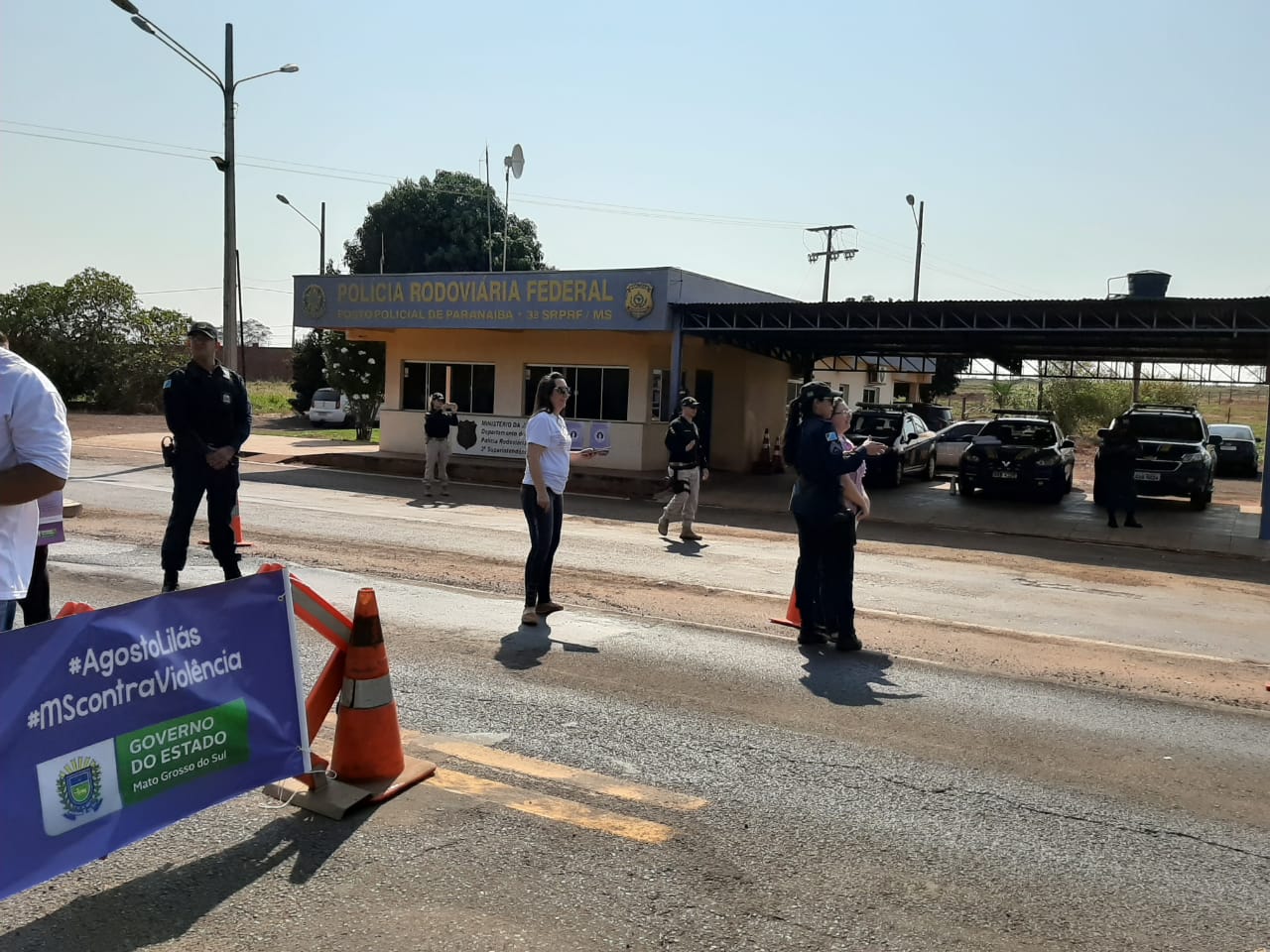 Paranaíba (MS) – Nesta terça-feira (21/08), às 09 horas, policiais militares de Paranaíba, juntamente com profissionais integrantes da Rede de Enfrentamento à Violência Doméstica, realizaram uma blitz alusiva à campanha “Agosto Lilás”. Confira conosco mais detalhes!