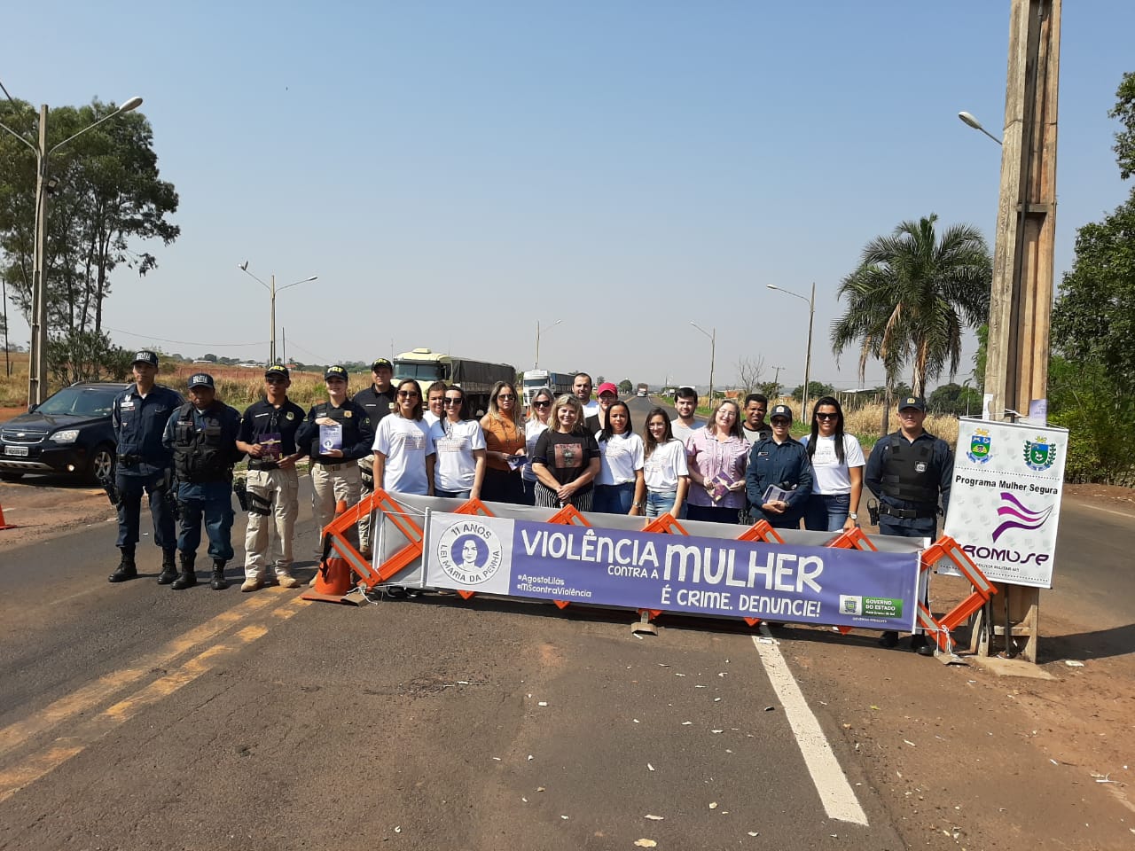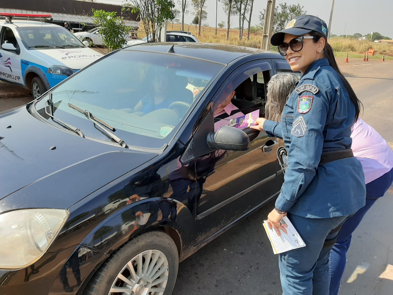 Polícia Militar e profissionais integrantes da “Rede de Enfrentamento à Violência Doméstica” realizam blitz alusiva à campanha “Agosto Lilás” em Paranaíba
