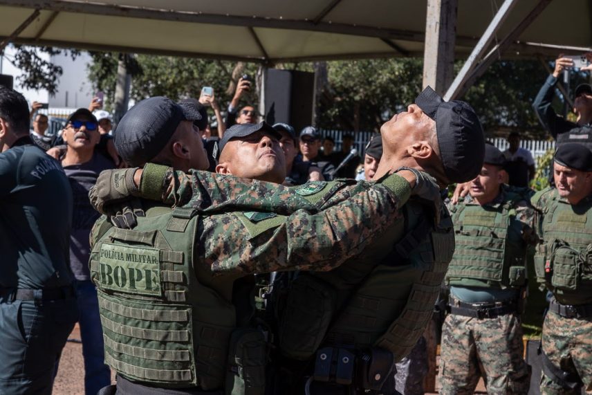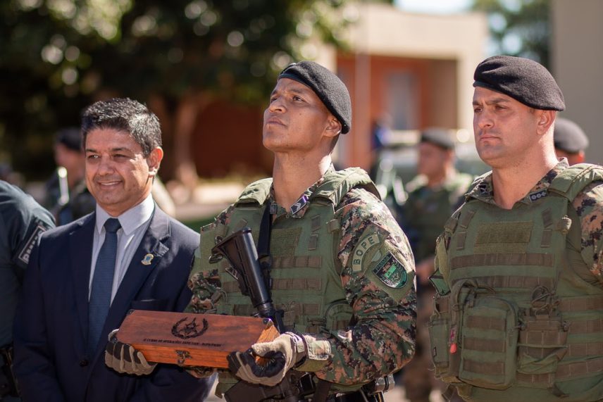 O Cabo Gabriel que é lotado há 9 anos na Força Tática do 5º BPM e estes estiveram presentes em peso para comemorar a conclusão do curso que foi realizado no Quartel do Comando Geral da PMMS. Toda a Equipe também recepcionaram o novo caveira na entrada de Coxim e escoltaram pelas principais ruas e avenidas da cidade com direito a sirene, giroflex e buzinaço.