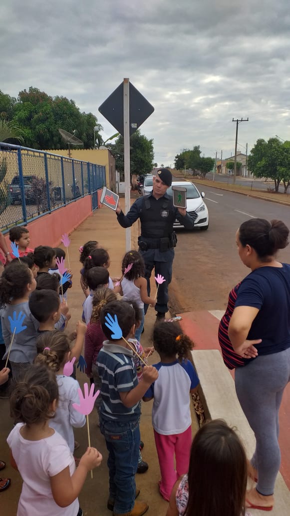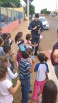 A Palestra foi ministrada pela Guarnição de Serviço composta pelo 3º SGT Flávio de Jesus Tavares e SD PM Jeferson da Silva Dias, nas dependências e defronte ao Ceinf Vó Nona. A ação educativa buscou a conscientização dos alunos, com a internalização de valores que contribuam para a criação de um ambiente favorável a valorização da vida, focando o desenvolvimento de posturas e atitudes no trânsito, no sentido de garantir o direito de ir e vir dos cidadãos e consequentemente garantir um trânsito mais seguro. Os alunos poderão contribuir significativamente como multiplicadores do conhecimento adquirido, difundindo para seus pais e amigos.