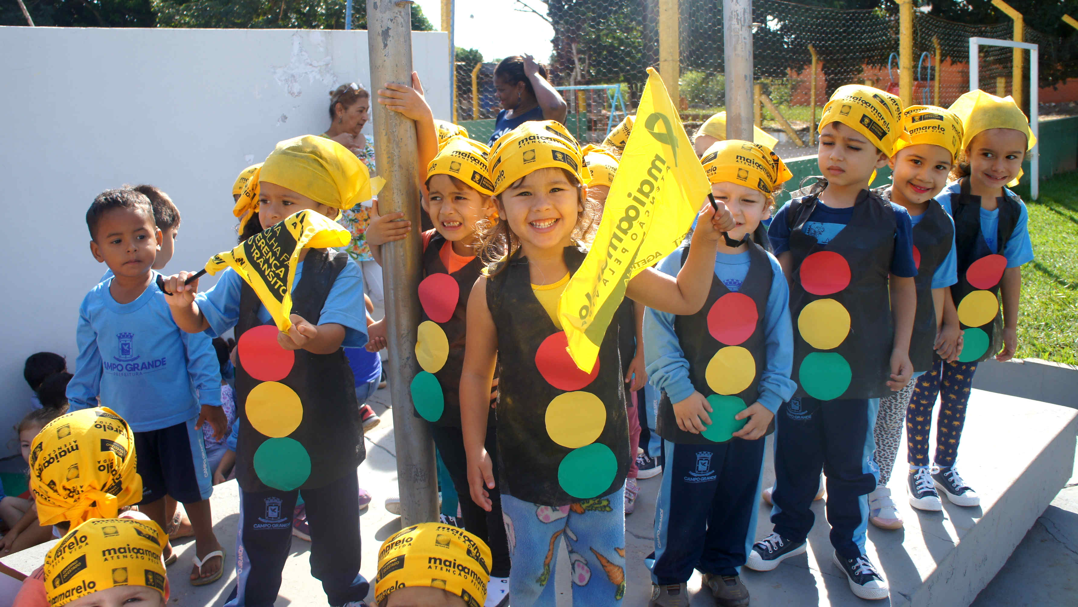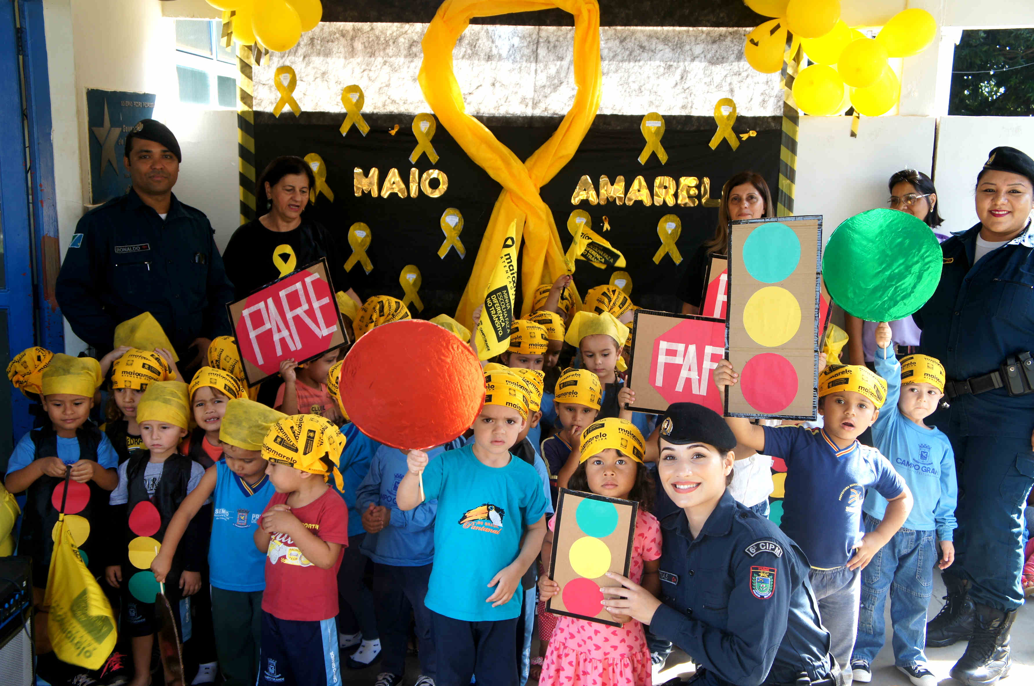 Campo Grande (MS) – Na manhã desta terça-feira, 30/05, policiais militares da 6ª CIPMMS, estiveram junto com as crianças para lembrar do mês de “Atenção no Trânsito”.