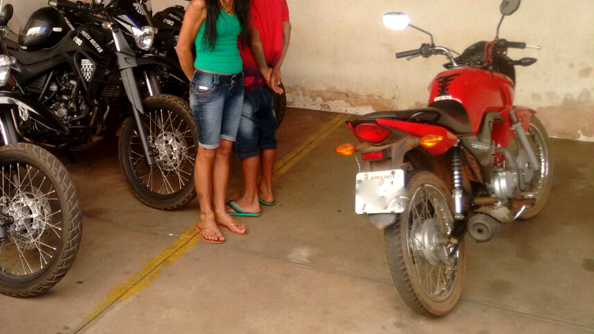 Questionado o mesmo diz que estava com a moto e que sua mãe havia comprado a moto há um dia. No momento apareceu no local da abordagem a sua mãe, dizendo que havia comprado a moto de um terceiro. Foi dada voz de prisão à mulher e apreensão do menor de idade que foram conduzidos até a DEPAC.