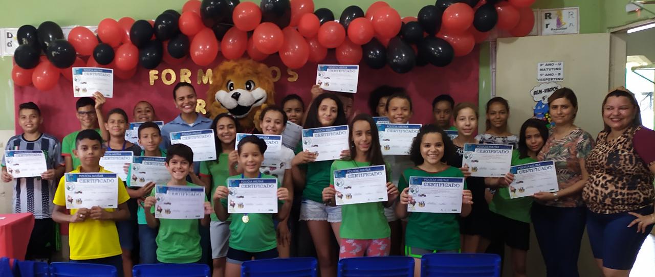 Polícia Militar realiza formatura de 58 alunos do Proerd na Escola Municipal Liduvina Motta Camargo, em Paranaíba