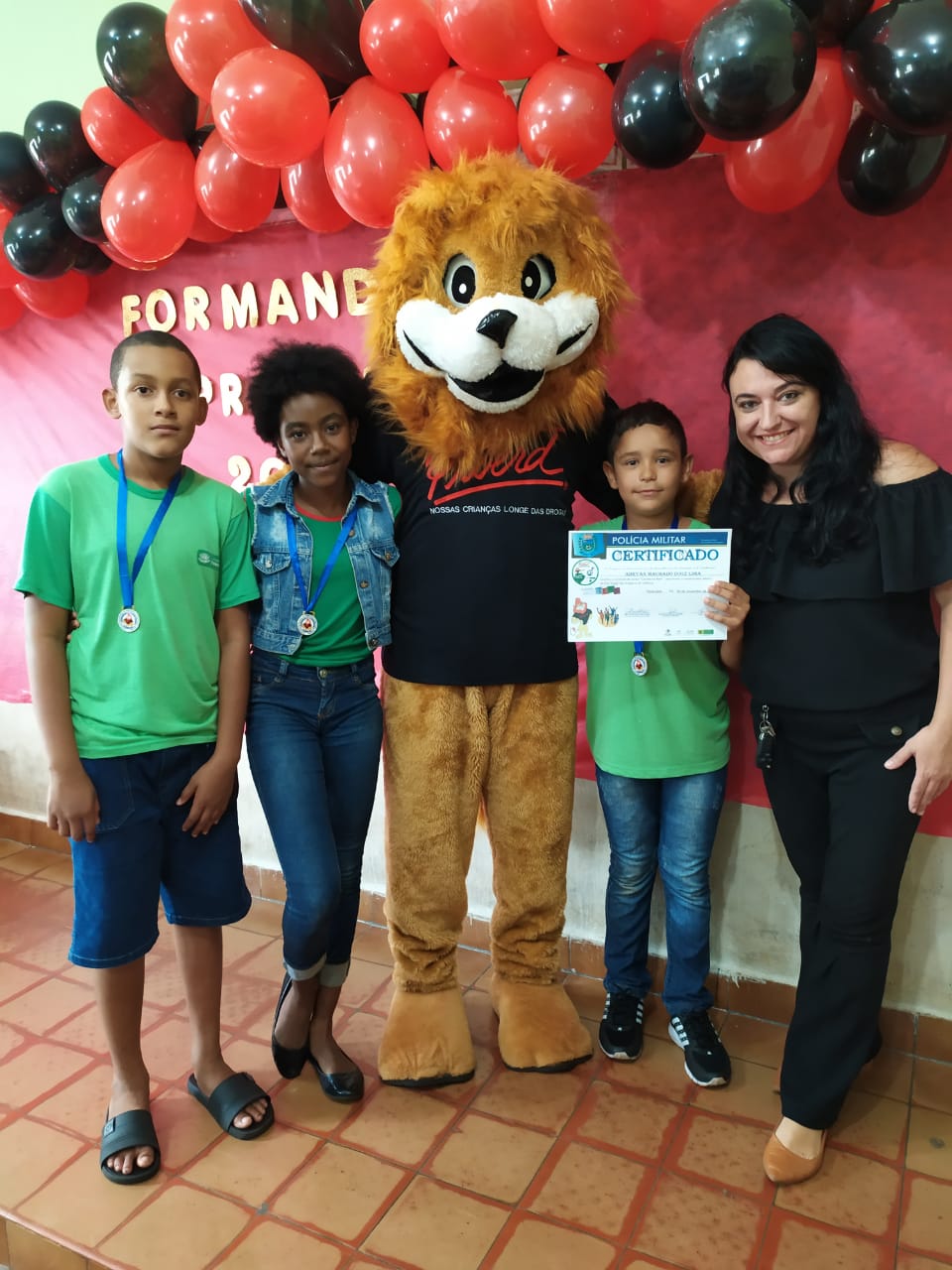 A festa foi bastante expressiva e também contou com a especial presença do símbolo mundial do Proerd, o Leão Dare, que animou a todos os presentes, especialmente as crianças. Os policiais militares interagiram com as crianças, dançando e cantando a Canção do PROERD. As crianças se divertiram e fizeram o juramento de sempre dizer não às drogas à violência.