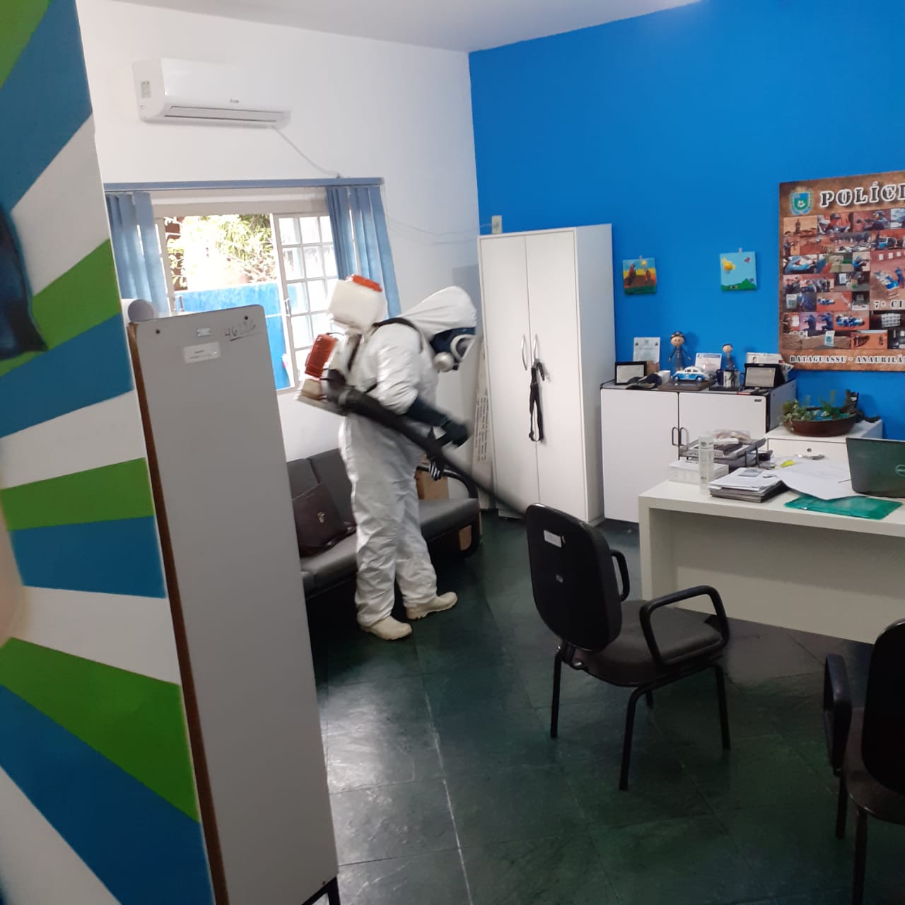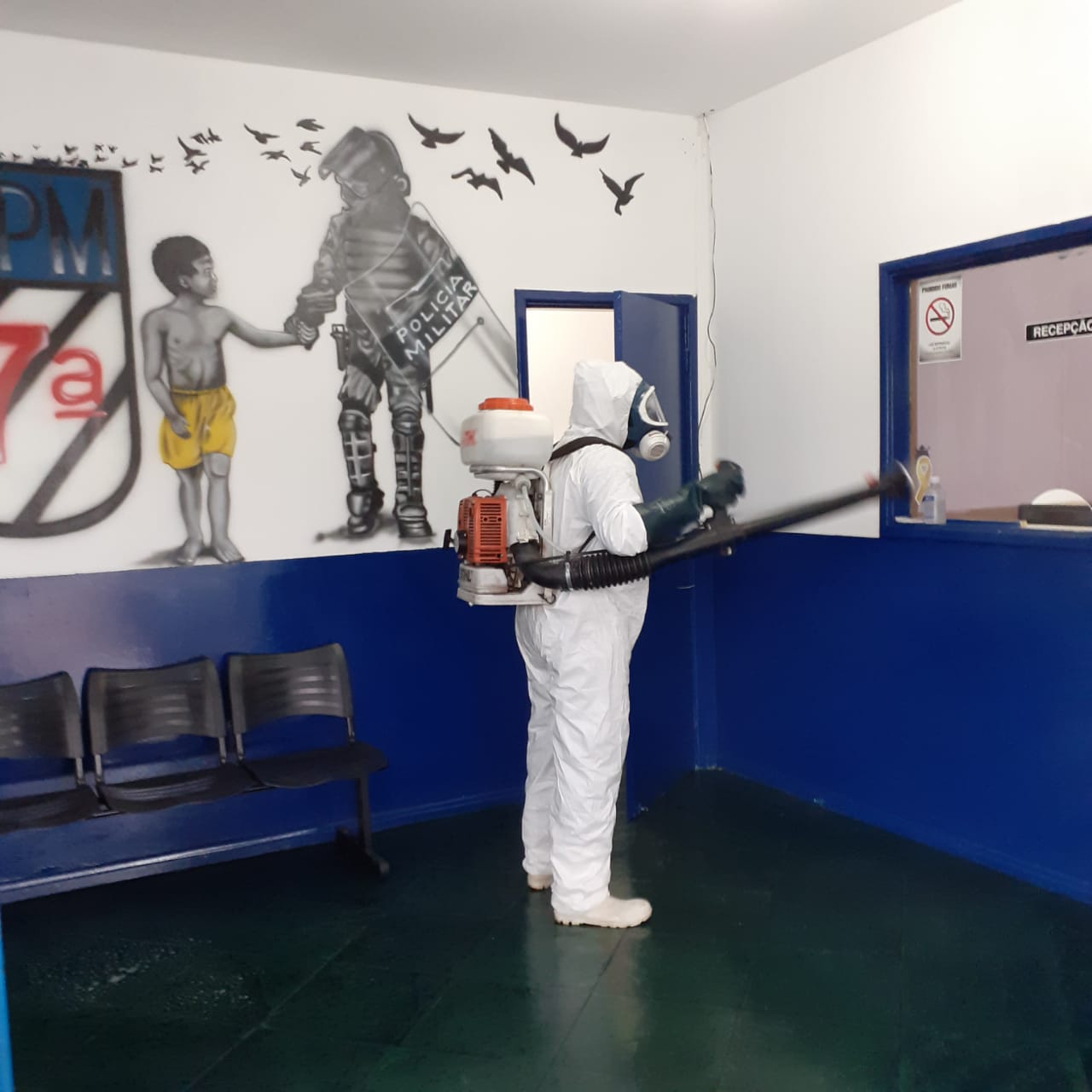 O 2º SGT PM Luiz Carlos de Oliveira da DGPL (Diretoria de Gestão de Patrimônio e Logística) realizou o serviço de desinfecção em Bataguassu, Santa Rita do Pardo e Anaurilândia, além dos Distritos de Nova Porto Xv e Quebracho. Os policiais também têm seguido a risca as orientações das Autoridades de Saúde que visam o combate ao contágio do Novo Coronavírus, como a utilização de Equipamentos de proteção (máscara e luva) e a higienização das mãos com frequência.