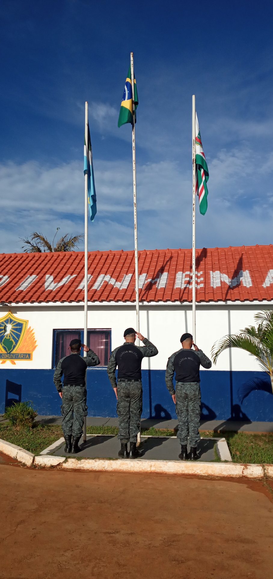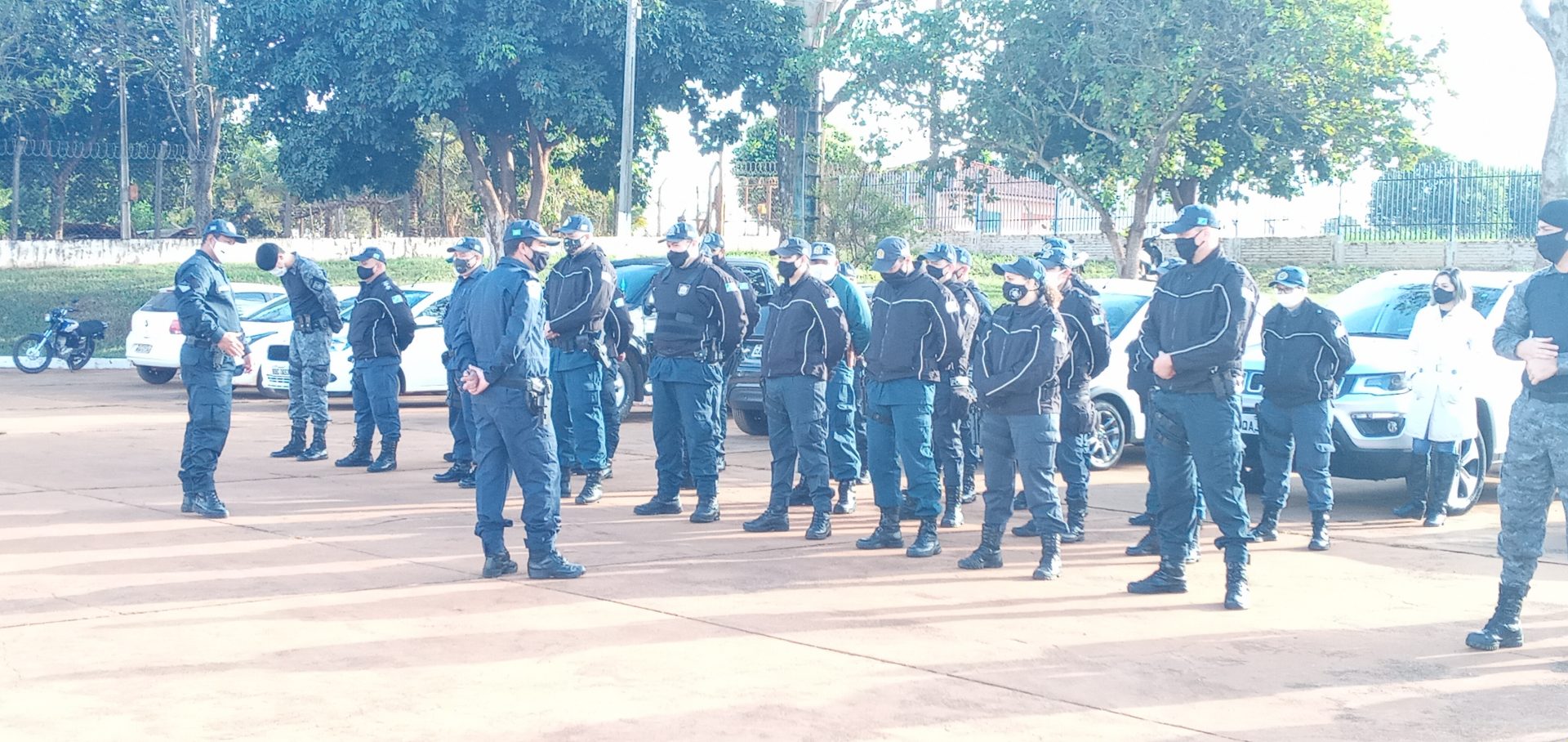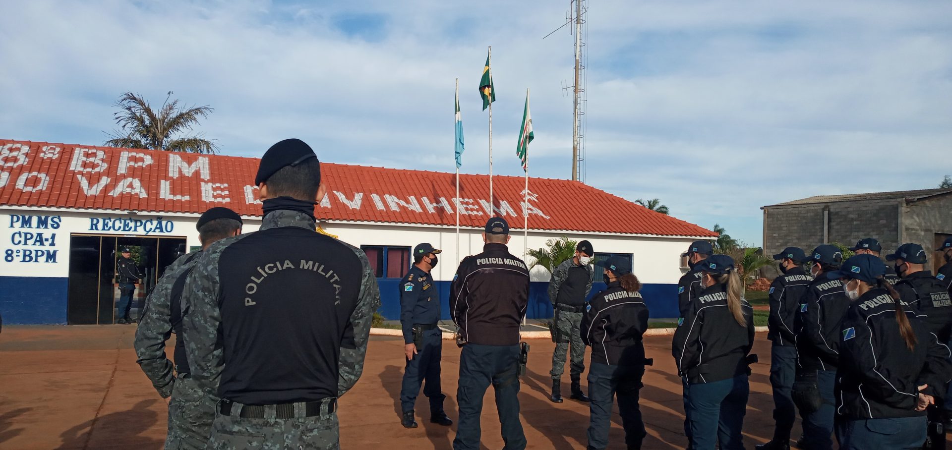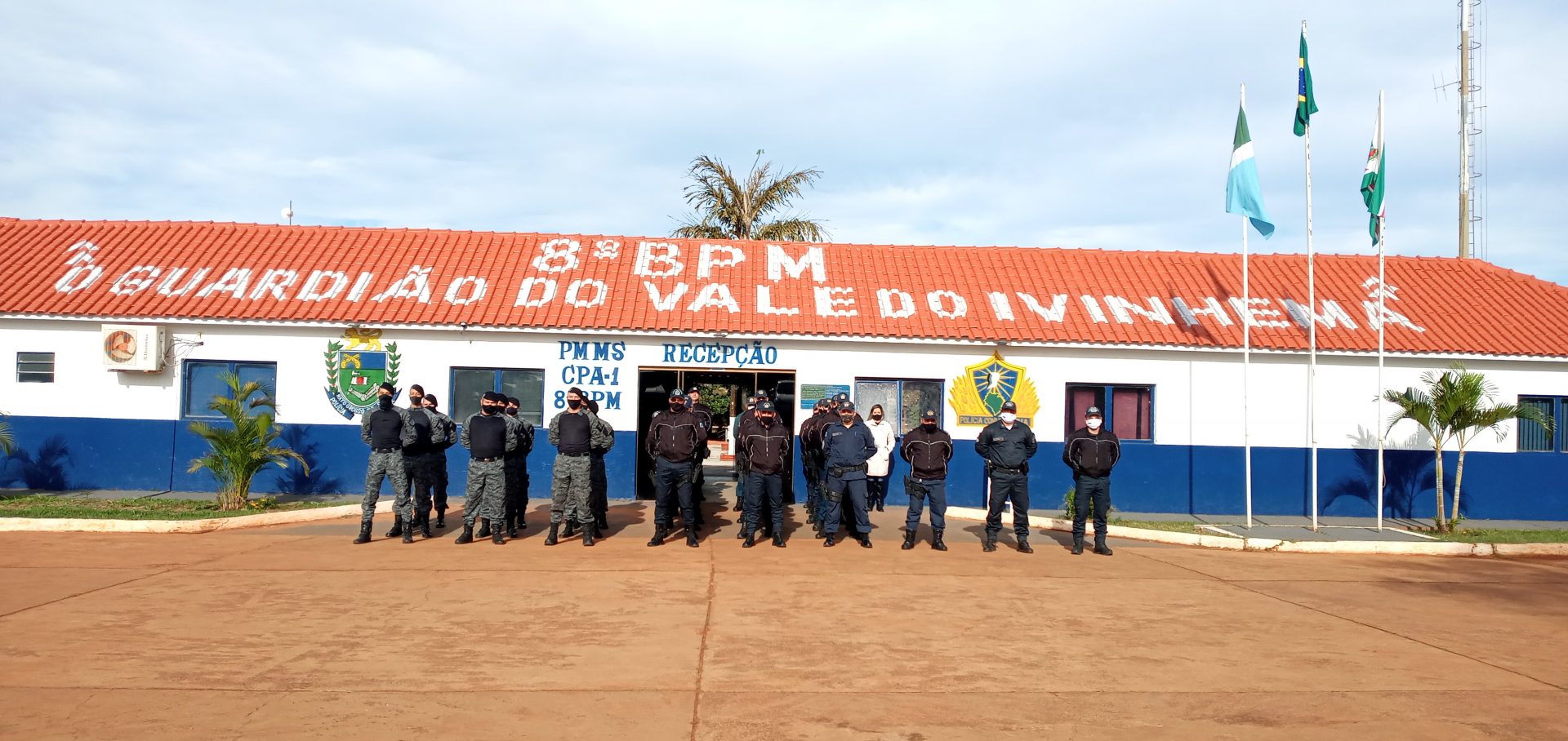 Nova Andradina (MS) – O 8º Batalhão de Polícia Militar, “Guardião do Vale do Ivinhema”, realizou hoje (29) como de costume a parada diária com o efetivo operacional e administrativo, mesmo diante da baixa temperatura em torno de 5°C apresentada nesta manhã. Os policiais militares bem como o Comandante Tenente Coronel J. Roberto foram surpreendidos no momento em que entravam em forma para o hasteamento da bandeira, pela visita da Presidente do Conselho Comunitário de Segurança de Nova Andradina Dra Etiene Cintia Chagas e o vice-presidente Dr Walter Aparecido Bernegozzi Junior, com a entrega de uma moção de parabenização pelos excelentes serviços prestados em toda a região do Vale do Ivinhema. Na oportunidade foi feita a entrega de uma cópia do POP (Procedimento Operacional Padrão da polícia Militar) de atendimento de ocorrência envolvendo violência doméstica, manual que prepara o policial militar para o atendimento nessas situações.