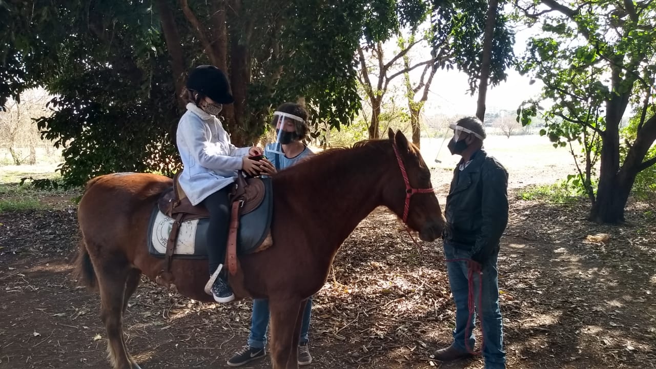 As atividades são realizadas ao ar livre o que permite maior sensação de bem-estar ao praticante, com um horário fixo de 30 minutos cada sessão necessita de acompanhamento de um auxiliar guia que é quem conduz o cavalo, um mediador e um lateral que são profissionais formados em pedagogia e com curso e treinamento especializado em Equoterapia.