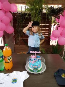 Na tarde de hoje 25/08, os policiais do 10º batalhão prestigiaram o aniversário da Maria Eduarda, que fez 3 aninhos. A aniversariante é uma super fã da Policia Militar, e o sonho era ter uma farda e receber os policiais em sua casa.