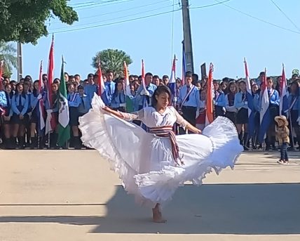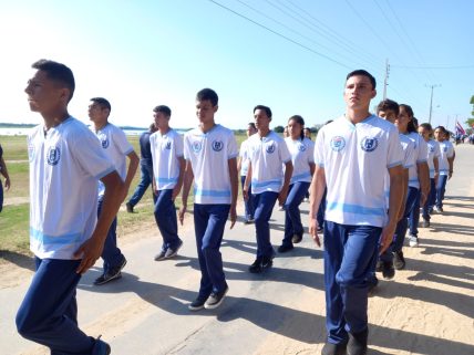 Alunos do 9° ano A, da Escola Municipal Cívico-Militar Claudio de Oliveira do município de Porto Murtinho participaram de desfile cívico no município paraguaio de Carmelo Peralta em alusão ao Dia da Independência do Paraguai.