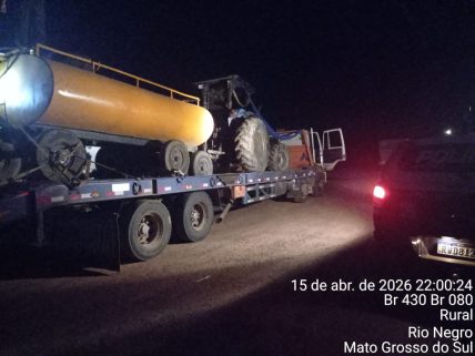 Durante a abordagem ocorreu durante policiamento ostensivo nas proximidades da rotatória da rodovia MS-430, onde um caminhão prancha foi interceptado. Os policiais identificaram indícios suspeitos na carga transportada. Após averiguação detalhada, foi localizado um grande volume de drogas escondido dentro de um tanque de combustível agrícola, estrategicamente colocado sobre o veículo, numa clara tentativa de burlar a fiscalização.