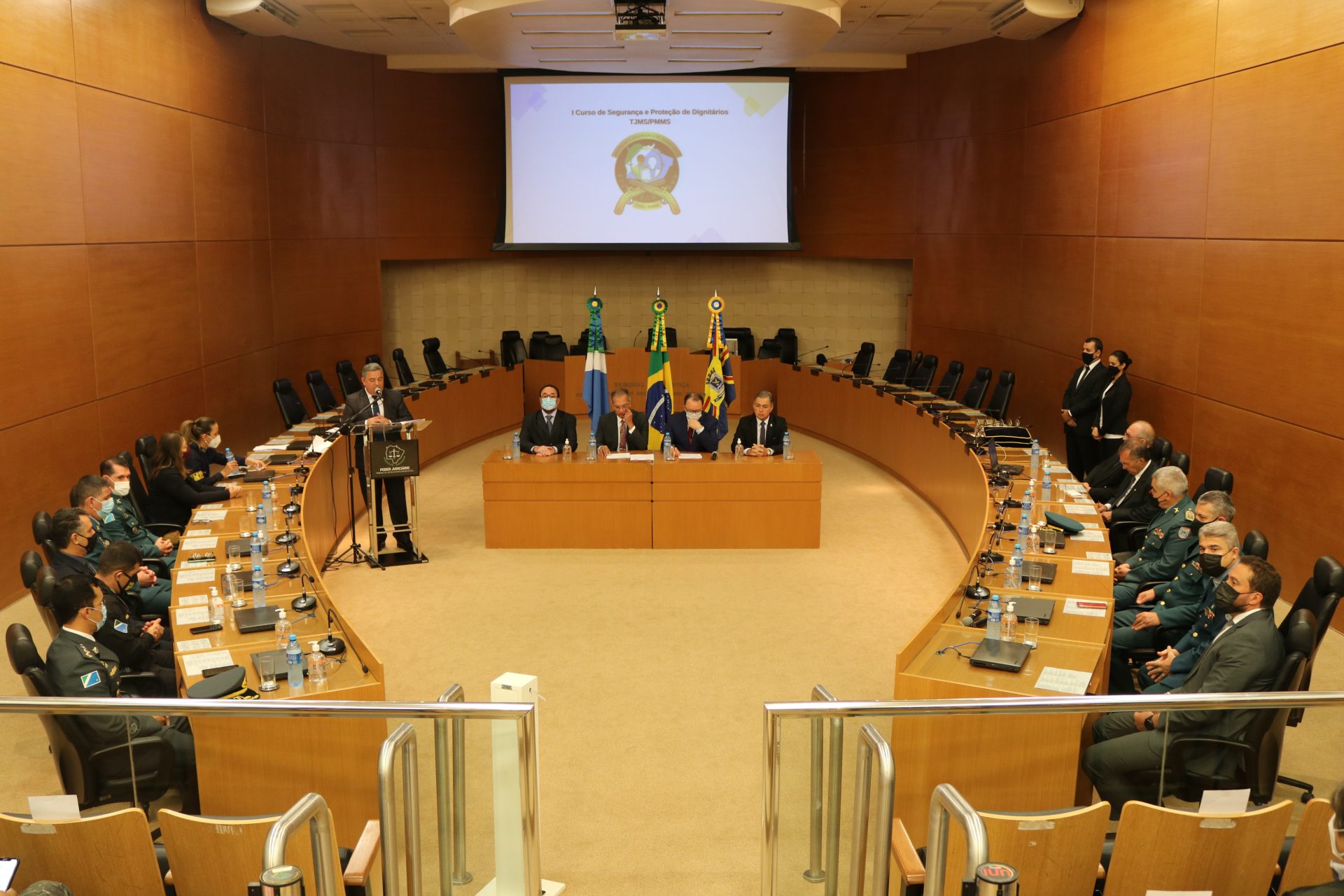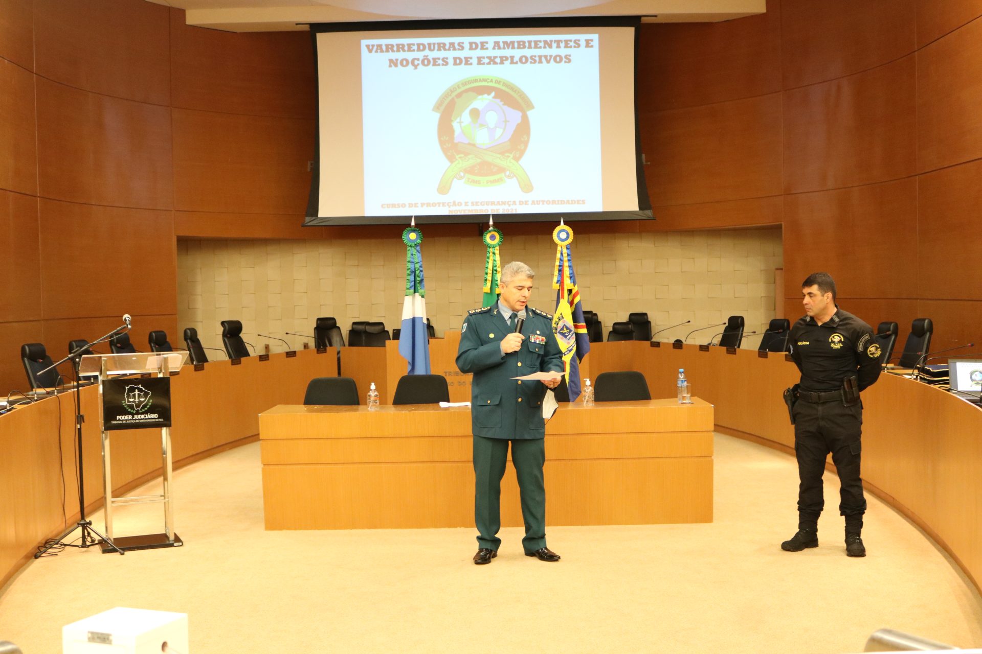 Campo Grande (MS) – Na manhã da última segunda-feira (22.11.2021) foi realizada a cerimônia de Aula Inaugural do 1° Curso de Segurança e Proteção de Dignitários – CSPD promovido pelo Tribunal de Justiça do Estado de Mato Grosso do Sul – TJMS.