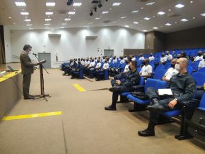 Três Lagoas (MS) –Nesta data (04), o Coronel PM Gil Alexandre da Rocha, Diretor do CFSD polo Três Lagoas, juntamente com o TC Paulo Ribeiro dos Santos promoveram no Auditório da Universidade Federal de Mato Grosso do Sul Unidade II a aula inaugural do curso de formação de soldados da Polícia Militar Polo Três Lagoas-MS. A aula inaugural foi ministrada pelo Excelentíssimo Senhor Juiz de Direito Criminal da 1ª Vara Criminal de Três Lagoas Rodrigo Pedrini Marcos, onde foi abordado como tema principal: “HOMICÍDIO e ÍNDICES CRIMINAIS”. Logo em seguida o Palestrante abordou ainda os temas: Audiência de Custódia e a Lei do Abuso de Autoridade. Foi aberto aos alunos soldados a oportunidade de fazerem perguntas, sendo aproveitado e feito alguns questionamentos para o saneamento de dúvidas e ja dar inicio ao conhecimento do serviço policial militar. Como encerramento o Coronel Gil Alexandre comandante do CPA-2 e Diretor do Curso de Formação de Soldados, fez um agradecimento especial ao Vereador Sargento C. Rodrigues que se fez presente como representante do Legislativo Municipal e grande admirador da Polícia Militar e do Drº Rodrigo Pedrini Marcos pela excelente palestra sendo esta muito proveitosa na colaboração de formação e moldagem do conhecimento dos novos alunos.
