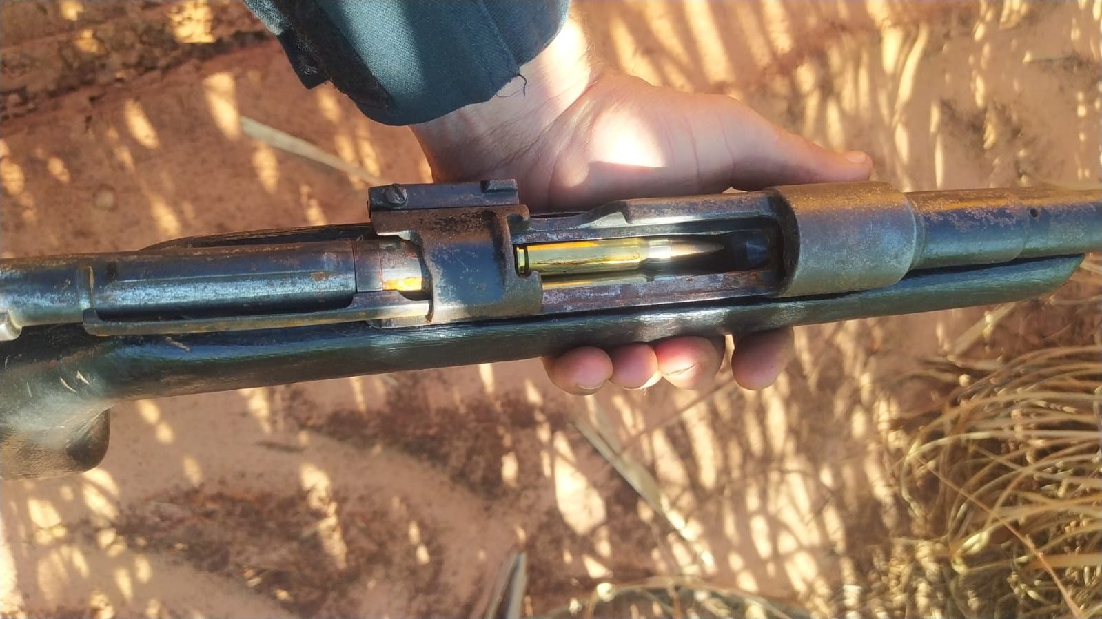 Durante vistoria ao veículo foi encontrado um fuzil cal. 762, com quatro munições intactas, além de vários entorpecentes, sendo 170 kg de maconha, 19 kg de skank e 1 kg de cloridrato de cocaína.