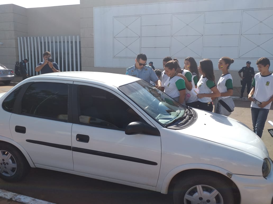 Coxim (MS): Na manhã do dia (20/03), os alunos do Projeto Bom de Bola Bom na Escola, da Policia Militar  de Sonora, em parceria com a Gerência Municipal de Educação, realizaram uma blitz educativa  com dicas de segurança no trânsito.