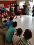 Outro momento muito especial foi quando a Sd Keila do BOPE fez apresentações de adestramento com o seu cachorro, o Sheik, as crianças ficaram fascinadas.