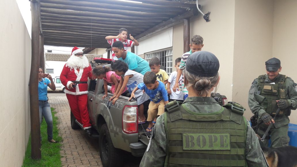 Campo Grande (MS) –Policiais militares do BOPE, Policlínica e Cavalaria, realizaram na manhã de hoje (07/12), na Casa Abrigo Lar Vovó Miloca uma ação conjunta com o objetivo de levar alegria, calor humano, além de aproximar a instituição policial militar dessas crianças em situação de vulnerabilidade.