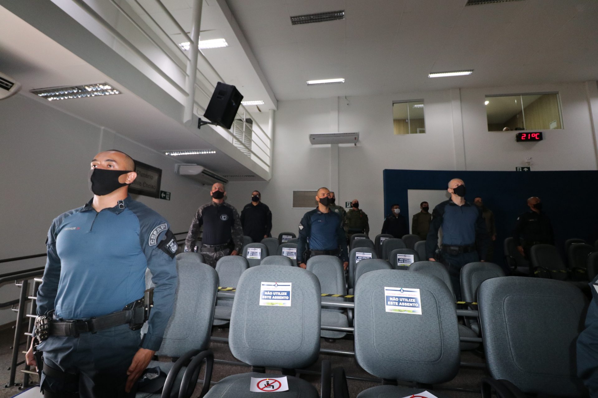 Estavam presentes na solenidade o Comandante-Geral da PMMS, Coronel PM Marcos Paulo Gimenez, o Comandante da DEIP, Coronel PM Airton Leonel Praeiro, o Comandante do Comando de Policiamento Especializado, Coronel PM Marcus Vinicius Pollet, o Comandante do BOPE, Major PM Vinicius de Souza Almeida, o deputado federal, Loester Trutis, os vereadores, Coronel Alírio Villasanti e Silvio Pitu, o diretor presidente da Funsat, Luciano Martins e o Coordenador do Arco Central – Programa Vigia, Mario Robson.