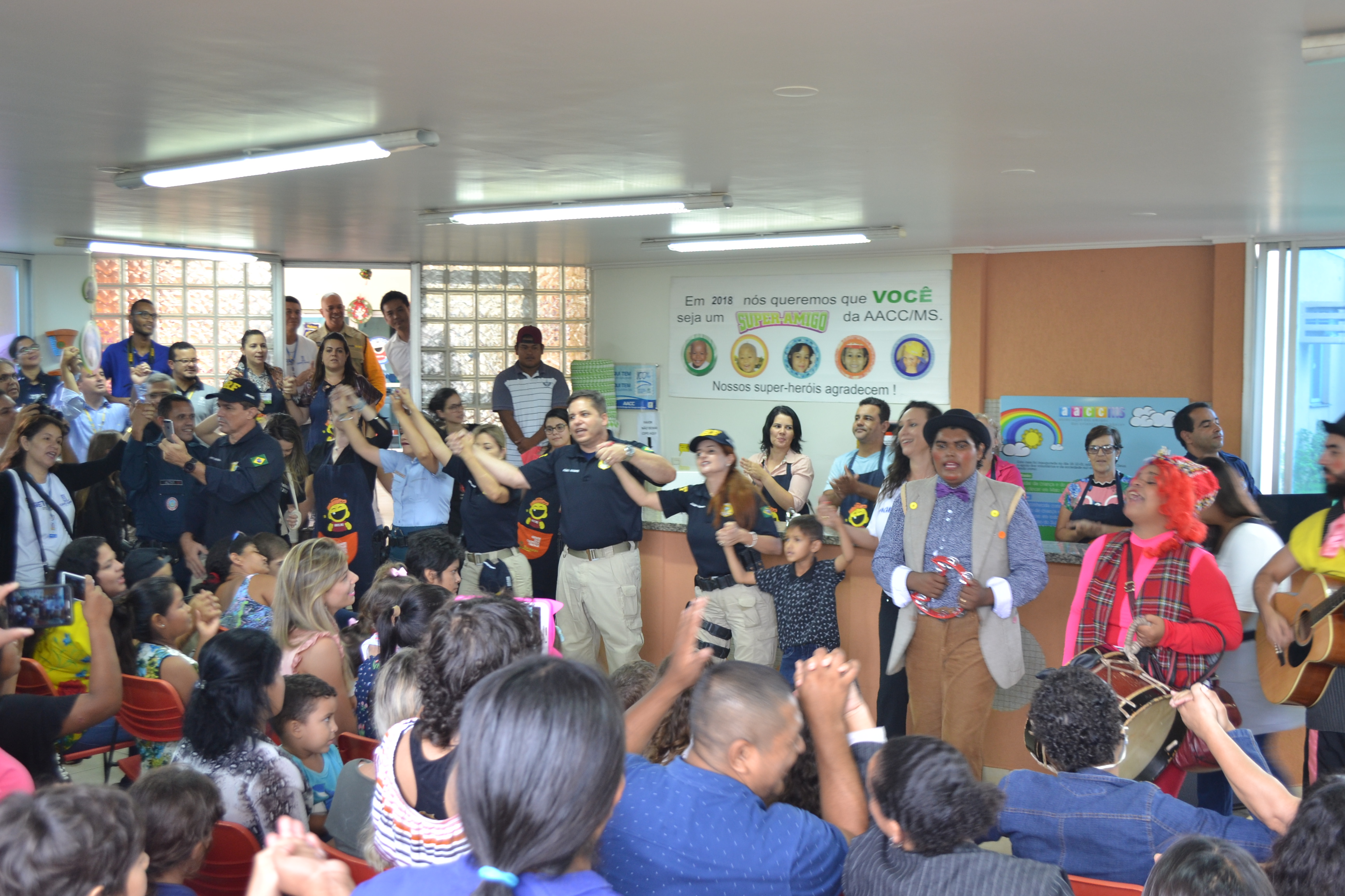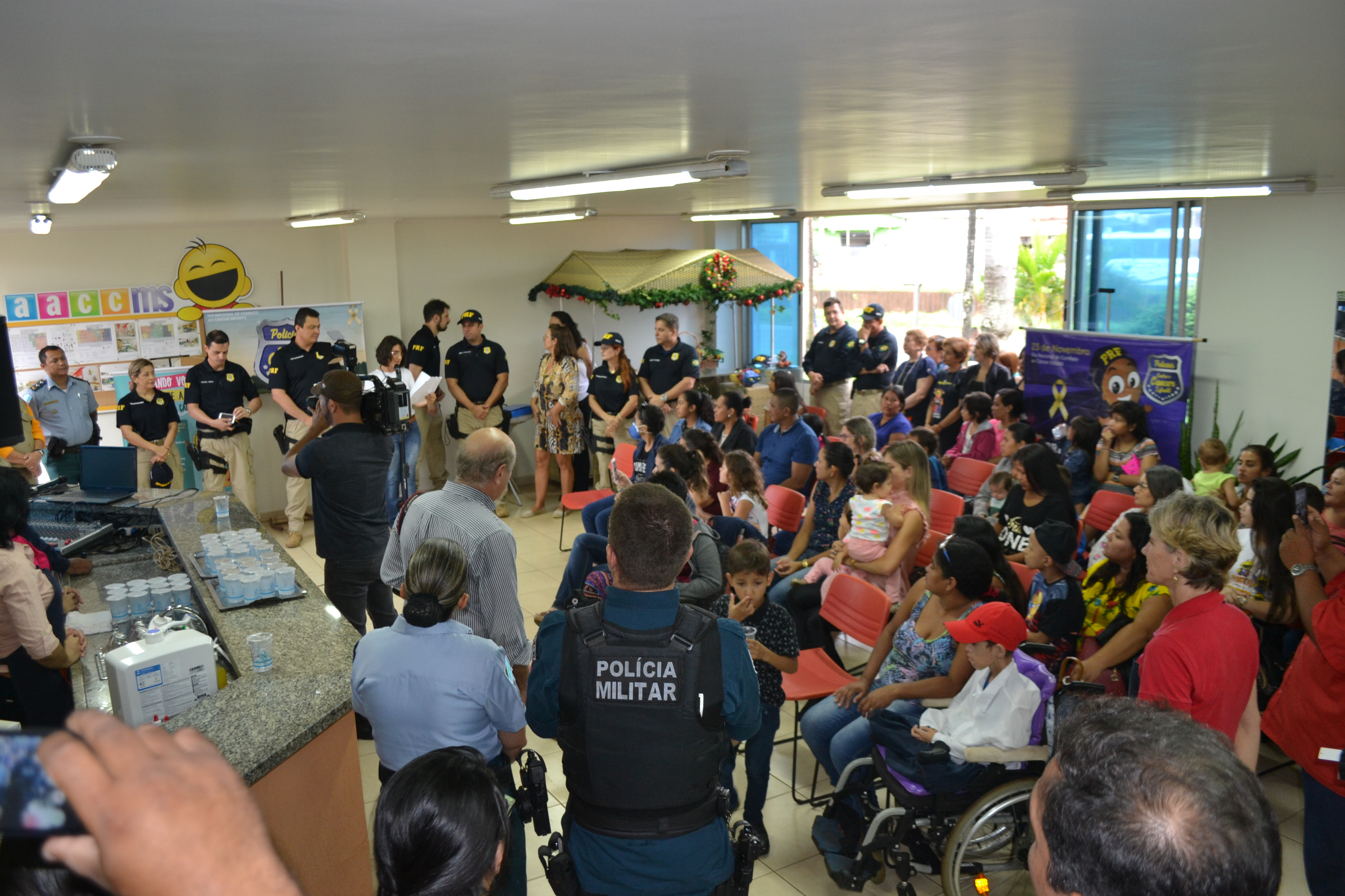 A campanha contou com doações de sangue, fraldas e realização de atividades recreativas na sede da AACC, tendo a participação do projeto Chico Maria que se apresentou com muita alegria, além de fotos das crianças nas viaturas e com os policiais.