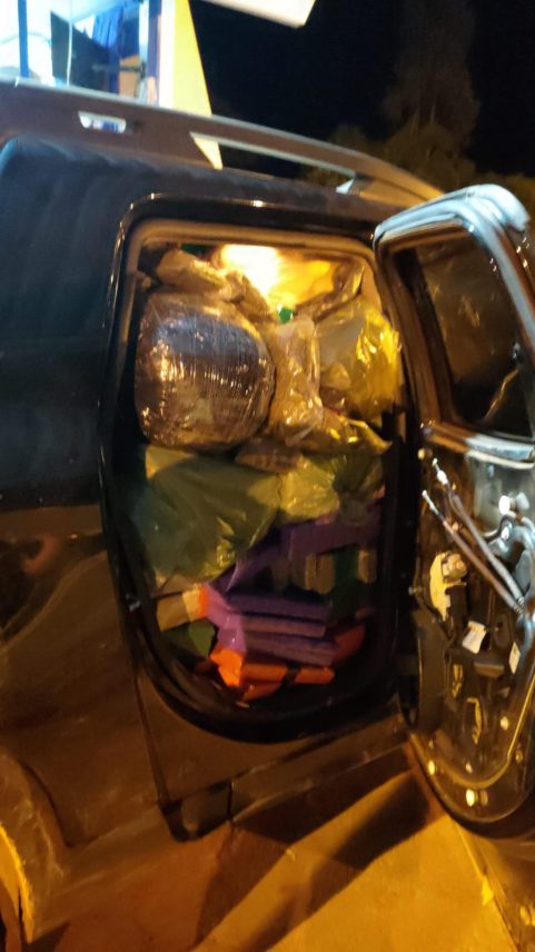 Com a chegada do apoio, base de Amambai, os PMs vistoriaram o automóvel e encontraram 1.500 kg de substância análoga à maconha, 105 kg análogo à Skank e 1,3 kg análogo à haxixe.