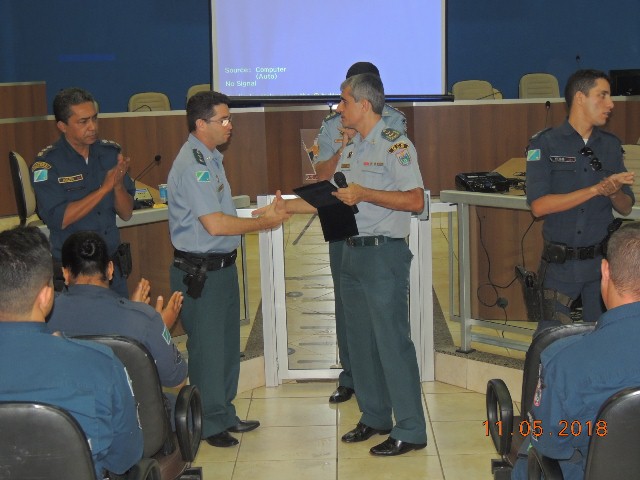 Ao final dos trabalhos, o Major PM Ênio recebeu uma homenagem em nome do 2º Batalhão de Polícia Militar das mãos do Chefe do Estado-Maior-Geral pelos relevantes serviços prestados, e agradeceu também a deferência em nome do Comandante do Comando de Policiamento de Área 2 (CPA-2), Tenente Coronel Joilson Queiroz Sant’Ana, que estava presente na palestra e considerou como “importante” o trabalho que vem sendo desenvolvido pelo Estado-Maior.