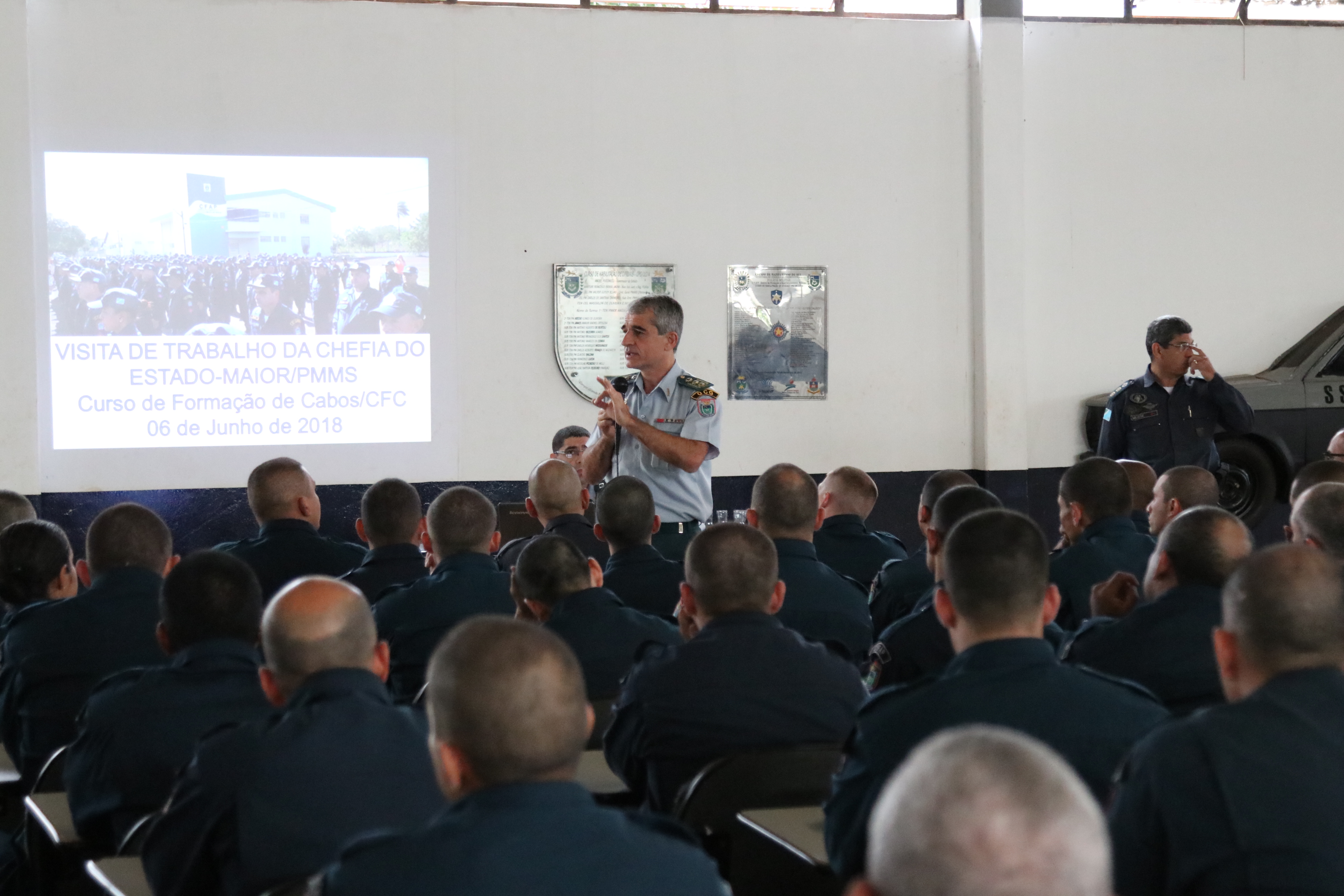Campo Grande (MS) – Na tarde desta quarta-feira (06/06), por volta das 15h, o Chefe do Estado-Maior-Geral da Polícia Militar do Estado de Mato Grosso do Sul – Coronel PM Paulo Rogério de Carvalho Silva, ministrou palestra para os alunos do Curso de Formação de Cabos da PMMS – CFC, no polo de ensino da capital,  Centro de Formação e Aperfeiçoamento Praças – CEFAP.