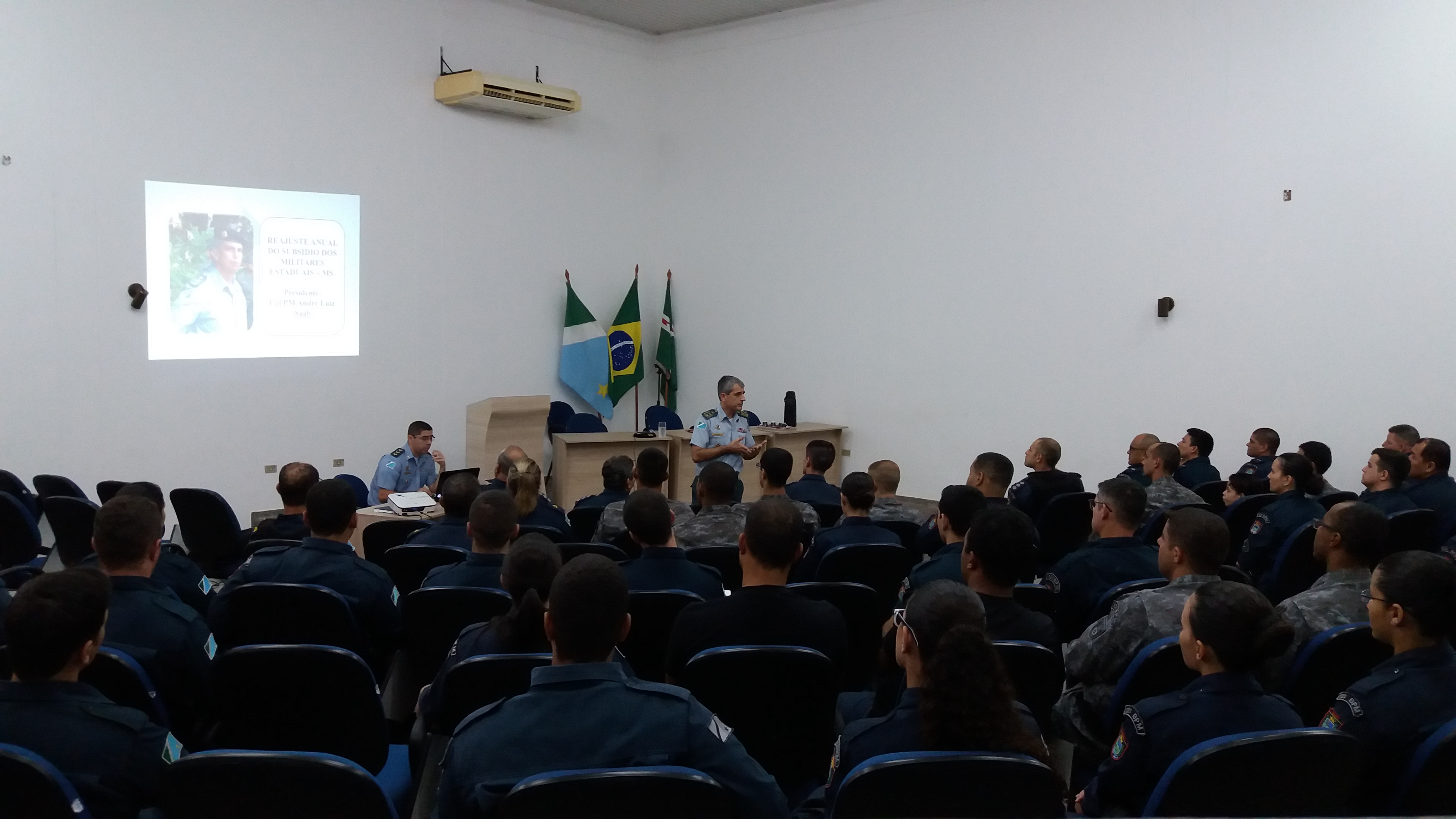 Naviraí (MS) – Na manhã desta sexta-feira (02/03), o Chefe do Estado-Maior-Geral da Polícia Militar de Mato Grosso do Sul, Coronel PM Paulo Rogério de Carvalho Silva, juntamente com o Tenente-Coronel Anderson Rezende Diniz (PM-2), realizaram uma palestra para os policiais militares do 12º Batalhão de Polícia Militar no auditório da Universidade Estadual de Mato Grosso do Sul (UEMS).