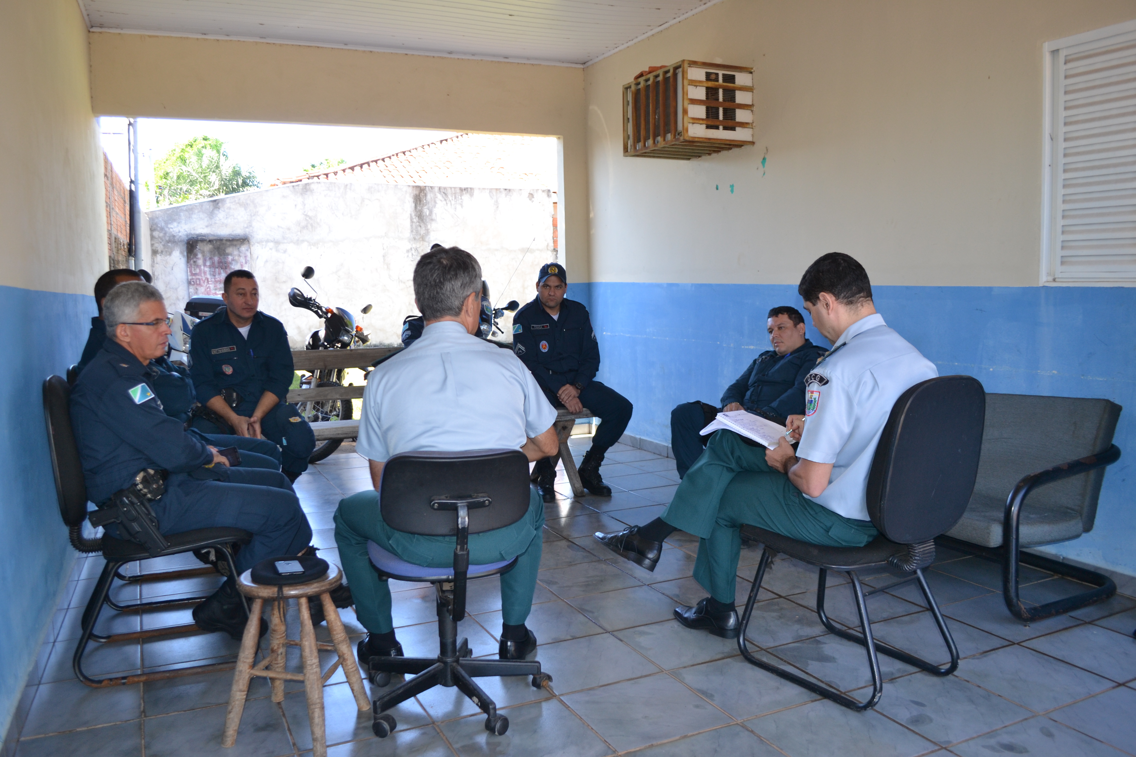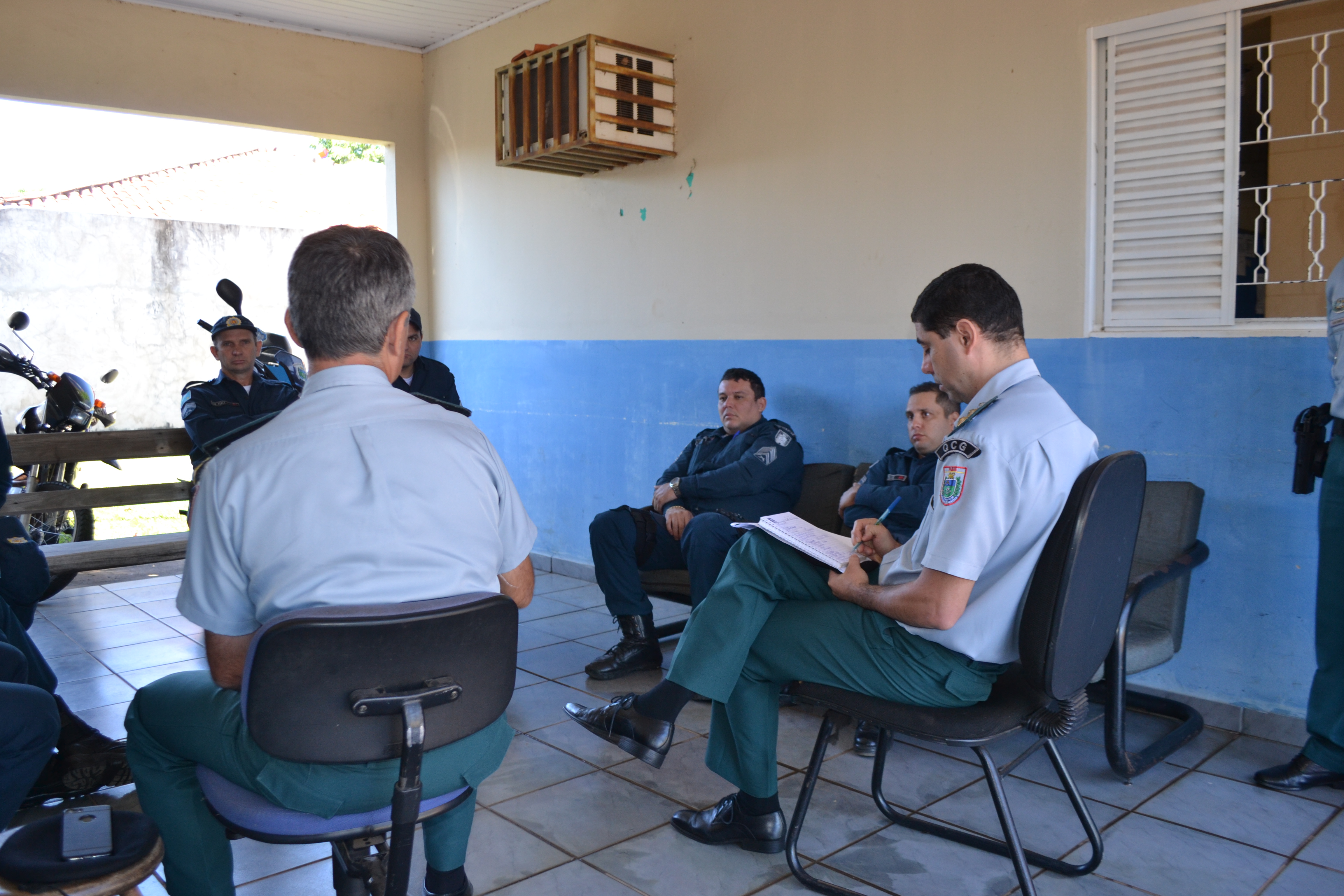 O Tenente PM Sylvio Nogueira, Comandante do 4º Pelotão juntamente com o efetivo da Unidade foram receptivos com a comitiva do Estado-Maior e na oportunidade procederam à reunião e vistoria nas dependências do Pelotão, sendo anotadas as necessidades do efetivo pelo Tenente-Coronel PM Rezende, que por solicitação do Coronel PM Rogério procederá à análise do pedido para providências, sendo possível.