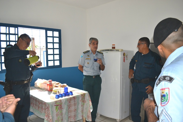 O 1º Tenente QAOPM Edson Glenfel Aquino Pinheiro, Comandante do 3º Pelotão juntamente com o efetivo da Unidade foram bastantes receptivos com a comitiva do Estado-Maior e na oportunidade procederam à reunião e vistoria nas dependências do Pelotão, sendo anotadas as necessidades do efetivo pelo Tenente-Coronel PM Rezende, que por solicitação do Coronel PM Rogério procederá a análise do pedido para providências, sendo possível.
