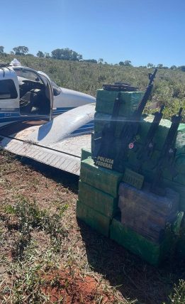 Ao chegar no aeroporto, os policiais militares se deparam com um avião Seneca e um veículo picape, ocasião na qual pessoas realizavam o transbordo de entorpecentes e armas para o interior da aeronave. Imediatamente, foi dada a ordem para desligar o motor, entretanto, o piloto prosseguiu com os procedimentos para decolar a aeronave, vindo a realizar um pouso de emergência momentos após. No interior do avião, as equipes policiais encontraram aproximadamente 442 Kg de cocaína, três fuzis Colt calibre 556, 10 carregadores calibre 556, uma espingarda calibre12 (semiautomática) e dois carregadores calibre 12.