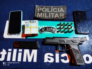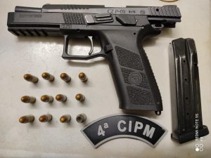 Chapadão do Sul (MS) – Na noite desta segunda-feira (03/05) a Polícia Militar foi informada, pela testemunha de 37 anos, que sua ex-companheira, estava defronte a casa da vítima(que também é ex esposa dele), na rua Tuiuiú no bairro Esplanada. A vítima de 37 anos solicitou que ele acionasse a PM, pois a autora de 39 anos estava na frente da casa dela armada com uma pistola. A autora insistia para que a vítima saísse para fora da residência, ela temia pois vinha recebendo ameaças de morte. Rapidamente os PMs foram até a residência e avistaram um veículo estacionado defronte a casa da vítima, havia uma mulher ao volante e um rapaz como passageiro no banco da frente, depois descobriram que o jovem de 18 anos era filho da autora. Foi realizado abordagem aos ocupantes do veículo, durante vistoria na bolsa da mulher foi localizado uma arma de fogo do tipo pistola, municiada com 12 (doze) munições intactas. Indagada se possuía porte e registro da arma, respondeu que não. Localizado ainda, no interior do maço de cigarro, a importância de dez mil reais, disse que havia sacado o valor entre ontem e hoje e disse que o dinheiro era de origem lícita. A autora disse que adquiriu a arma na cidade de Campo Grande MS, pagando o valor de quatro mil reais, disse ainda que foi até a casa da vítima para reaver um automóvel. Afirmou que a arma só seria usada contra ela caso a provocasse. A mulher foi presa e conduzida, juntamente com a arma de uso restrito e o dinheiro, até a delegacia.