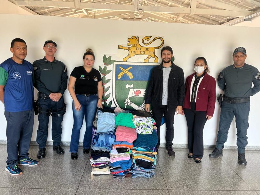 Fátima do Sul (MS) – Na manhã dessa quinta feira (01/06) o comandante do 14º Batalhão Tenente Coronel Teodoro Caramalac Neto, realizou a entrega do material arrecadado na campanha do agasalho “Seu Abraço Aquece” ao Centro de Referência da Assistência Social – CRAS de Fátima do Sul. No município, a Polícia Militar arrecadou mais de 300 peças entre cobertores, casacos e roupas, que agora serão destinadas a pessoas necessitadas.