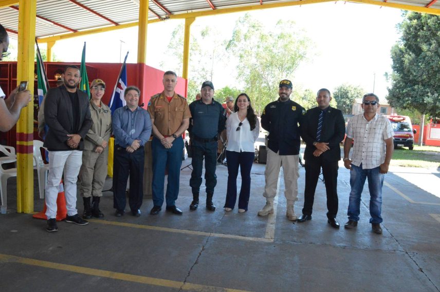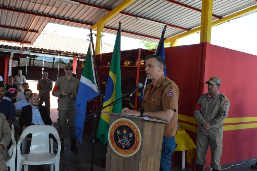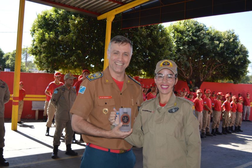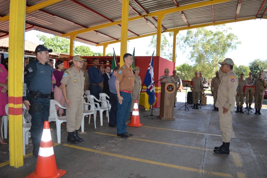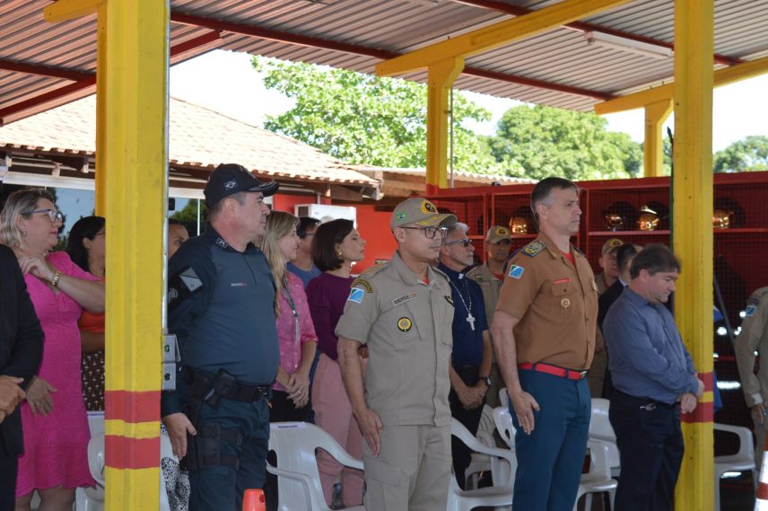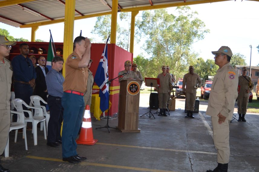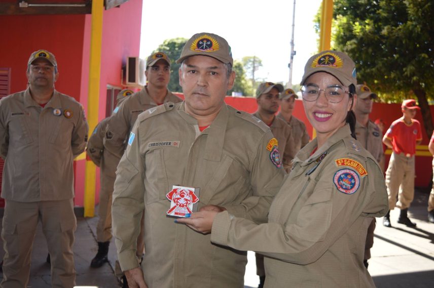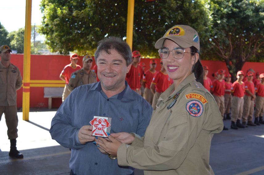 A Comandante do 5º SGBMI, Tenente BM Sabrinne Teodoro Azambuja realizou a entrega das homenagens aos agraciados: Comandante Geral do Bombeiro, Coronel Frederico Reis Pouso Salas, ao Prefeito Municipal, Dr. Edilson Magro e ao Subtenente Cristofer Osternberg que fez parte da 1º Guarnição a ser instalada em Coxim.
