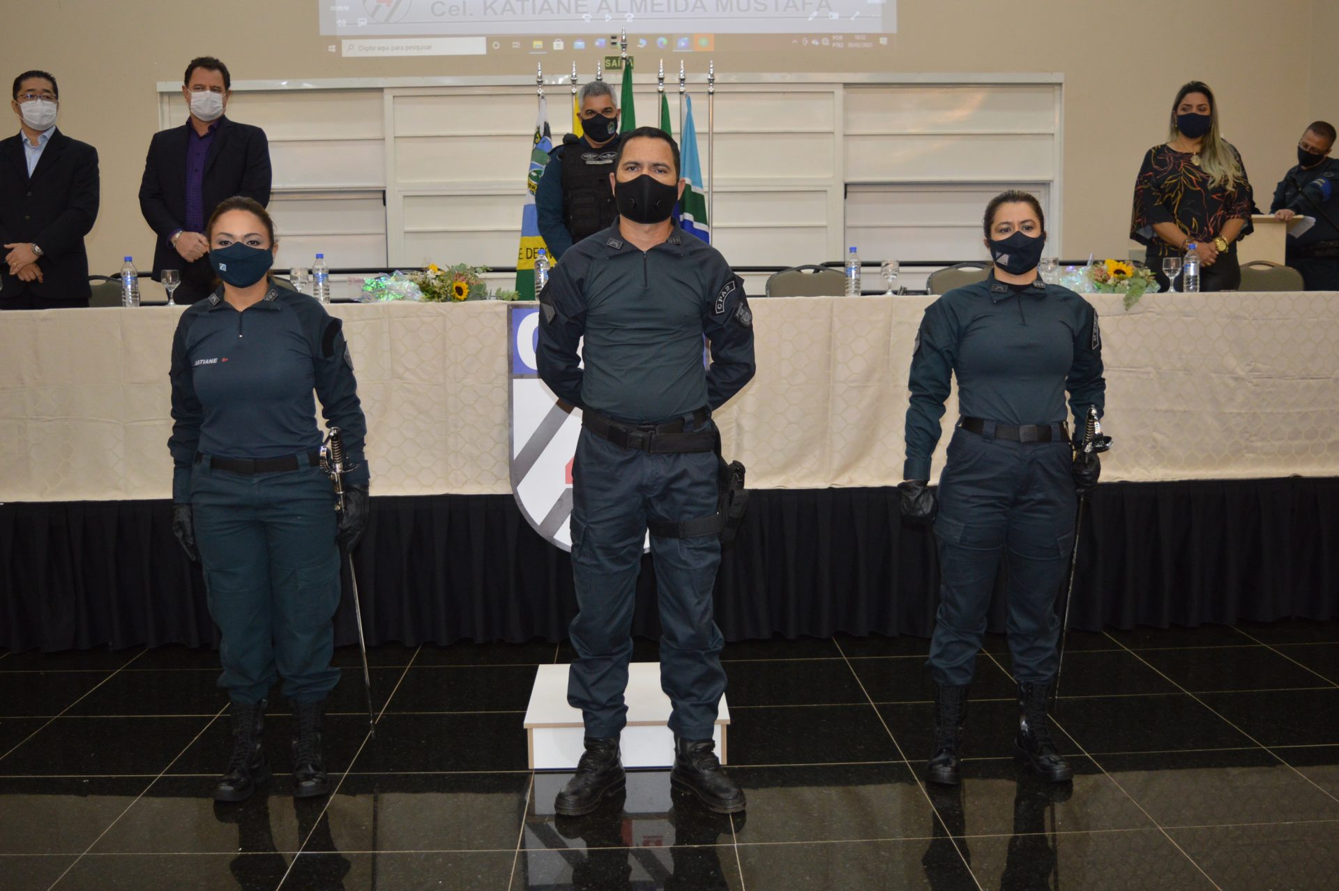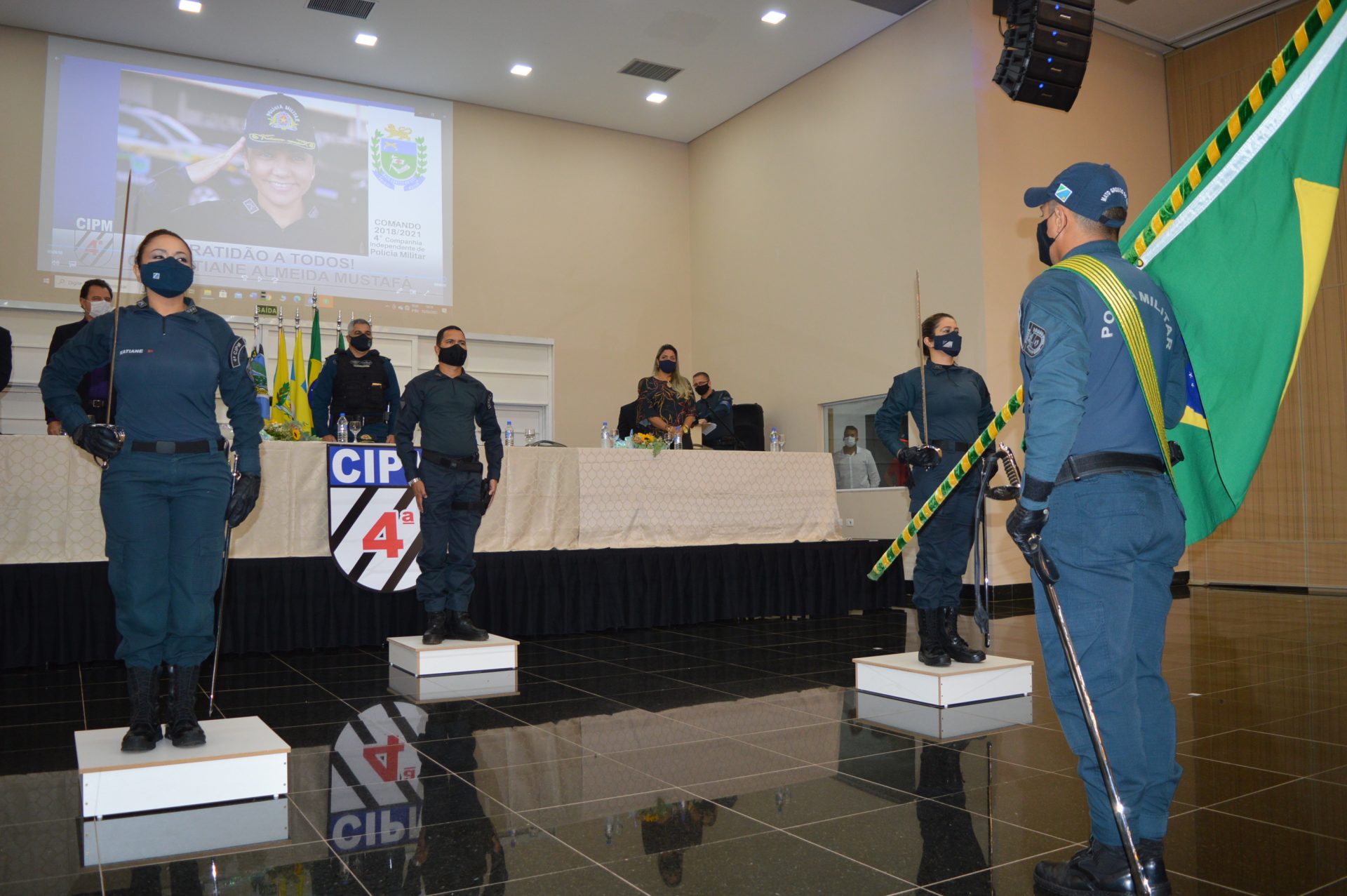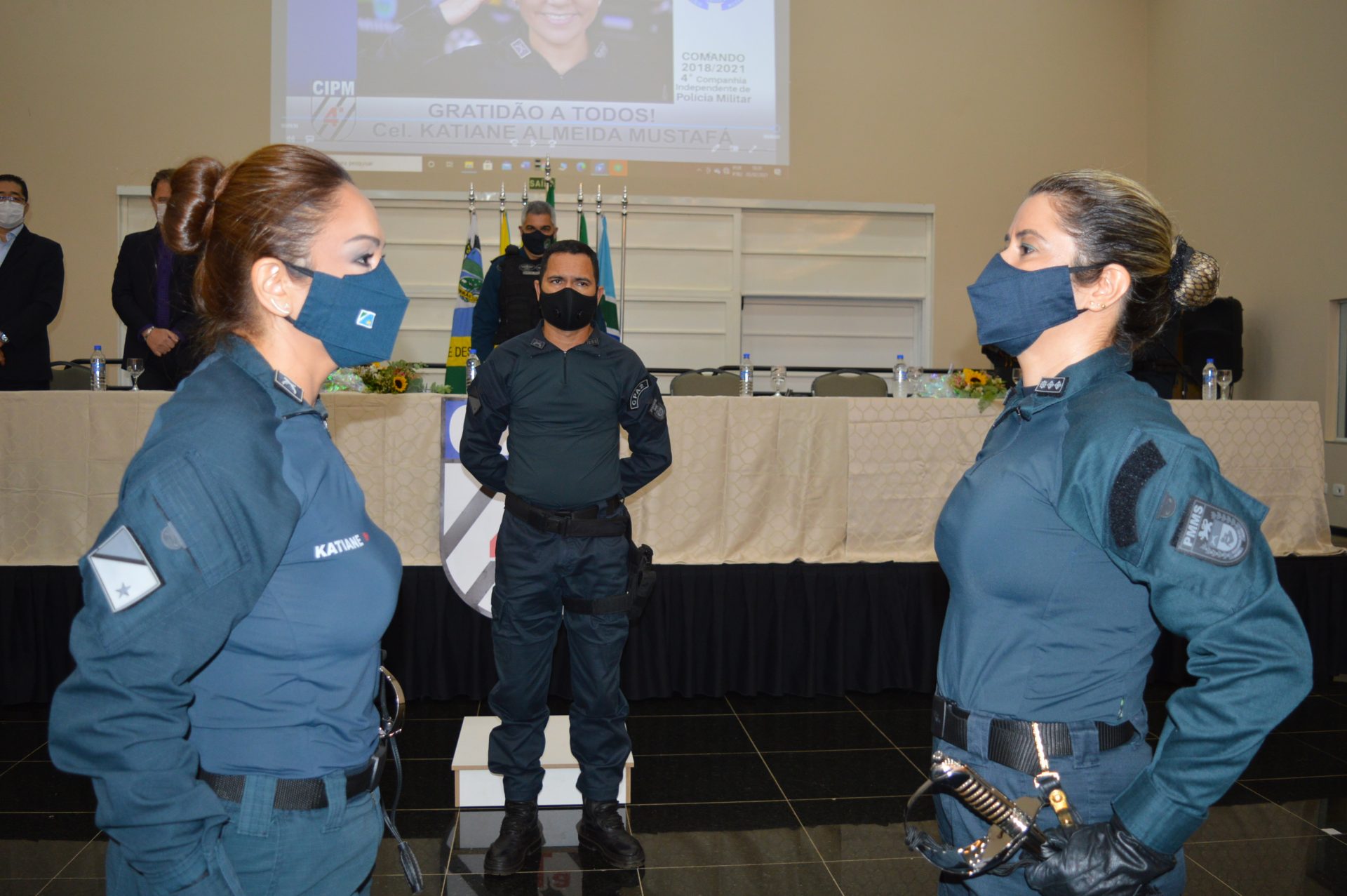 Emocionada, a Tenente-coronel Katiane mencionou suas ações a frente da companhia, sem esquecer de toda a tropa, a qual trabalha com dedicação e entusiasmo, finalizando suas palavras de agradecimento aos seus familiares. A solenidade foi marcante pelas inúmeras homenagens as comandantes e também para a 1º mulher a galgar o mais alto posto da polícia militar, a Coronel  Neidy Nunes Barbosa Centurião.