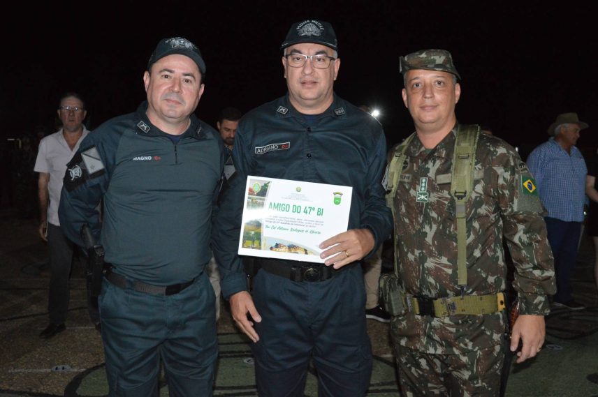 Coxim (MS): O Comandante do 5º Batalhão de Polícia Militar (BPM), Tenente-coronel Adriano Rodrigues de Oliveira, foi agraciado com o certificado Amigo do 47º Batalhão de Infantaria (BI) em uma cerimônia realizada em Coxim. O certificado é concedido a civis e militares que prestaram relevantes serviços ao 47º BI, reconhecendo suas contribuições e parcerias.